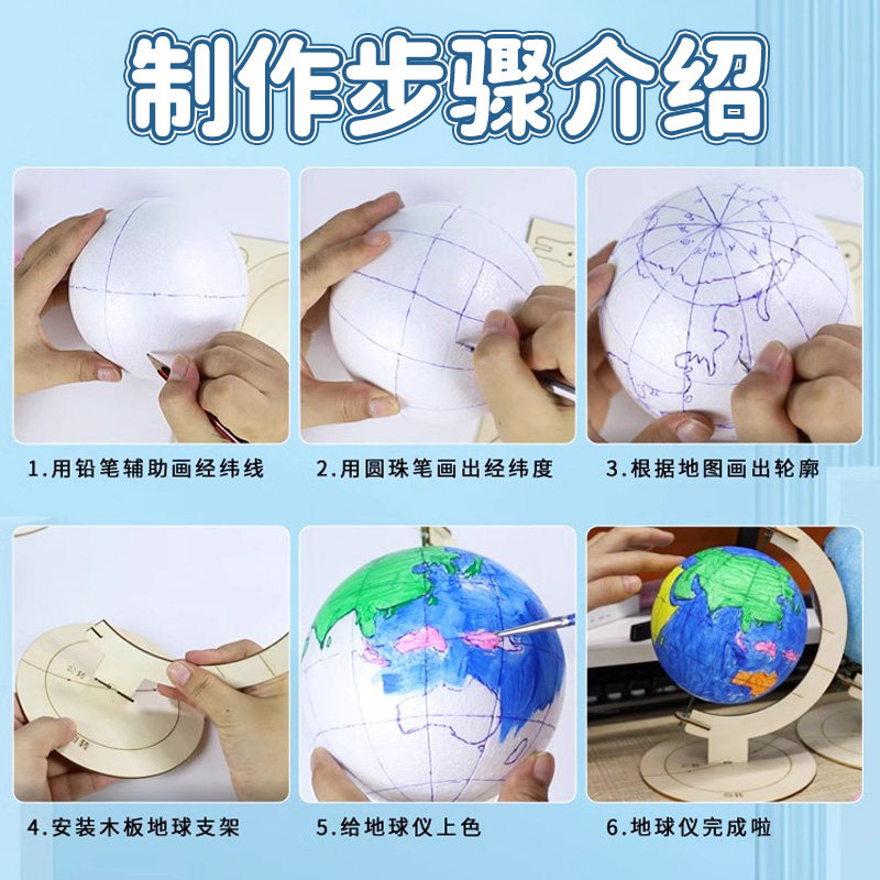 自制地球仪手工制作泡沫球diy材料包小号初中生初一地理空白专用模型儿童8厘米12cm小型中学生半成品教材同款