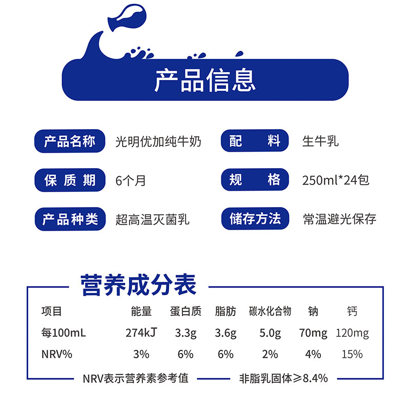 光明优加纯牛奶200ml*24盒3.6g乳蛋白钻石装