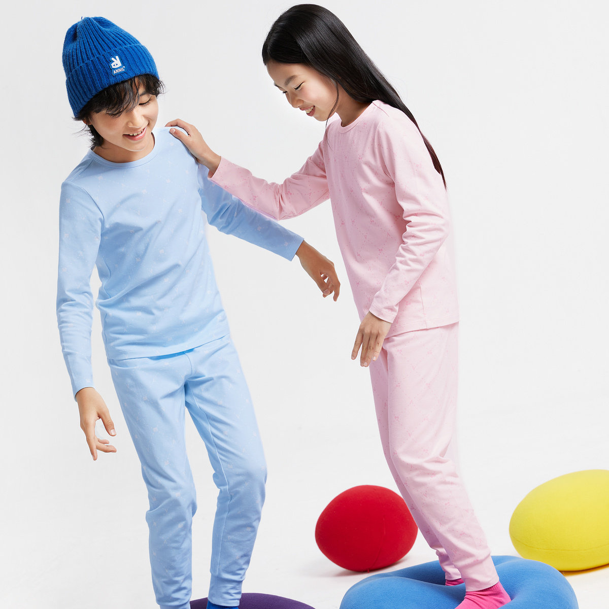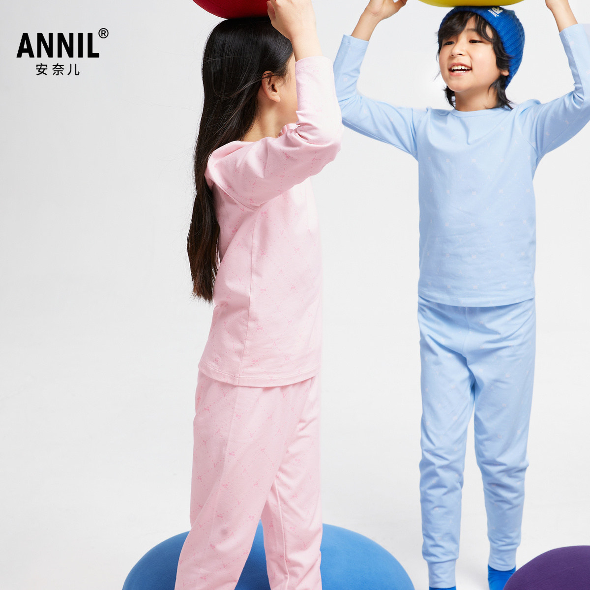 安奈儿童装男童女童秋衣裤打底内衣套装秋弹力印花家居服