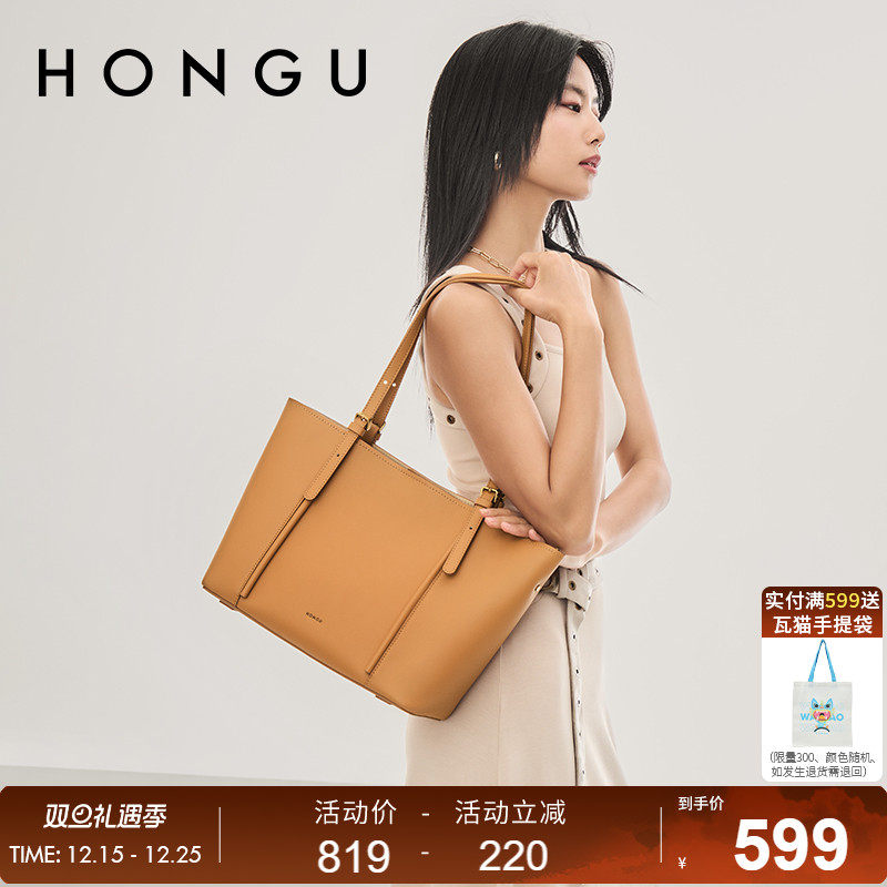 红谷包包女式新款牛皮单肩手提包休闲通勤购物大容量托特包女士包