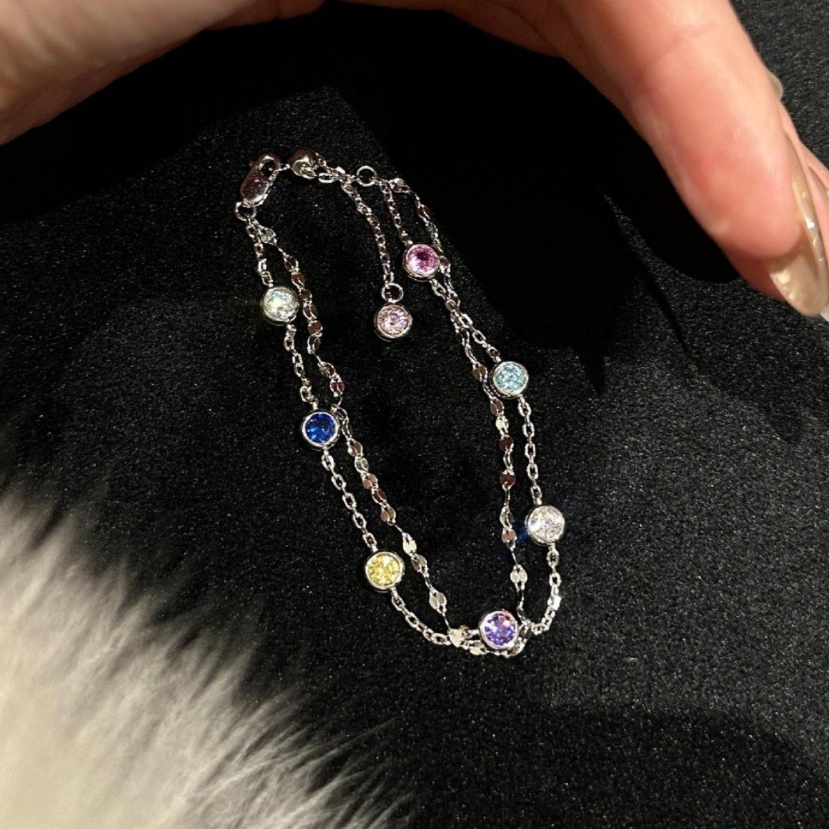 双层彩色多巴胺泡泡钻手链甜酷超仙可爱轻奢时尚百搭高级感手饰品