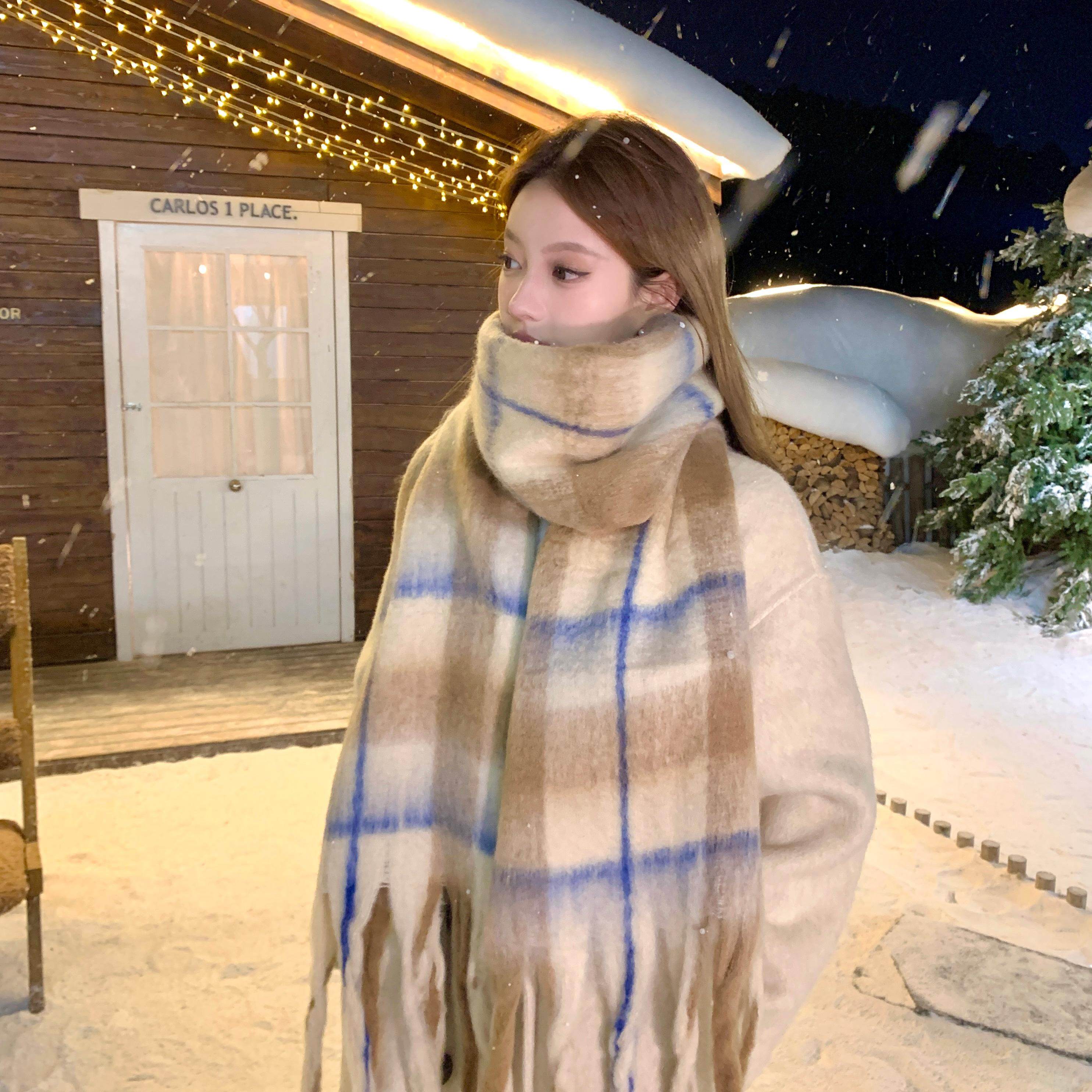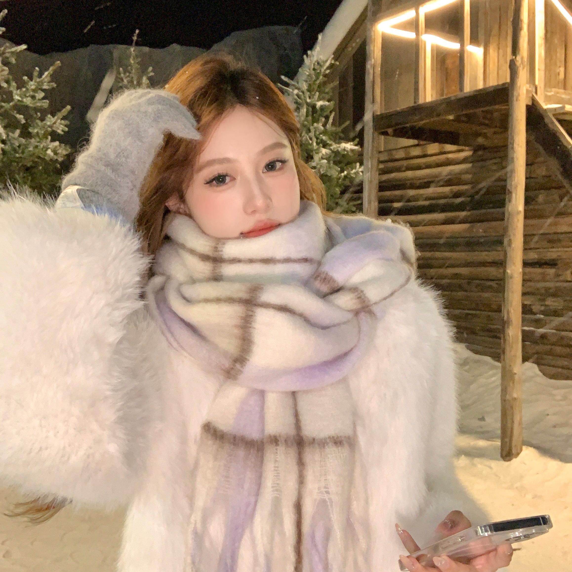 【蜜桃茶】氛围感女主 马卡龙格子流苏围巾韩系百搭冬季保暖围脖