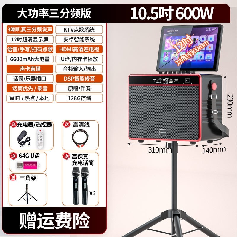 华宝广场舞音响带显示屏点唱K歌KTV音箱套装一体机户外卡拉OK家庭