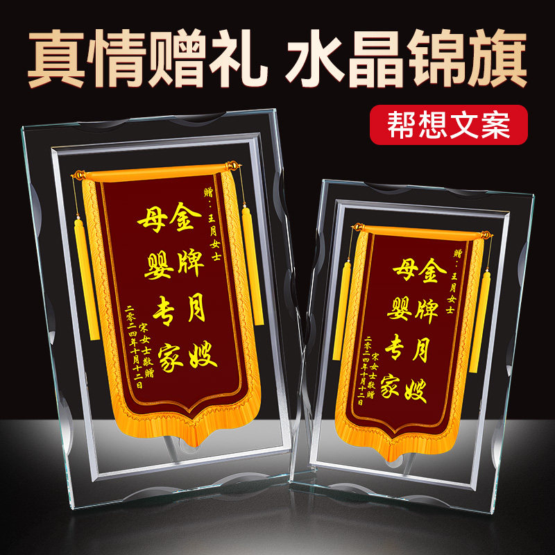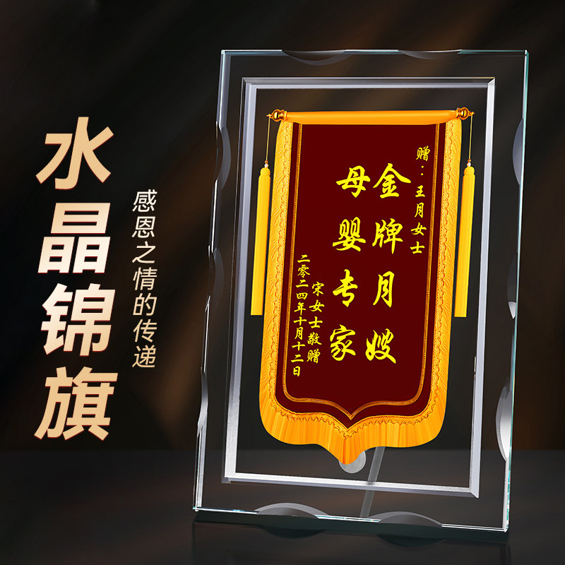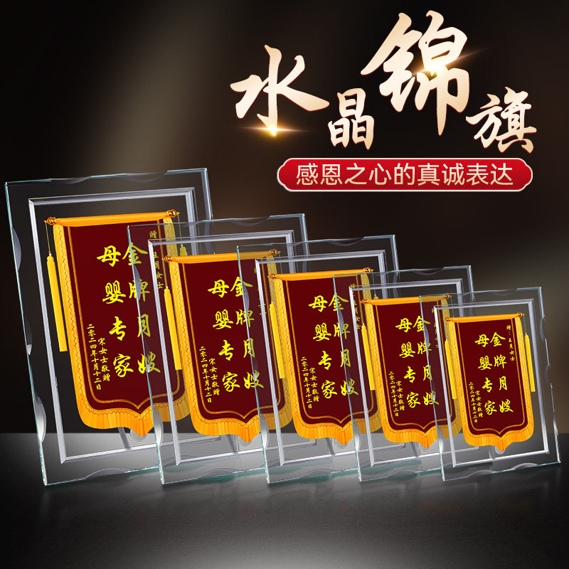 水晶锦旗亚克力锦旗定制定做感谢幼儿园老师医生民警月嫂物业服务订做旌旗周年纪念生日创意搞怪礼物