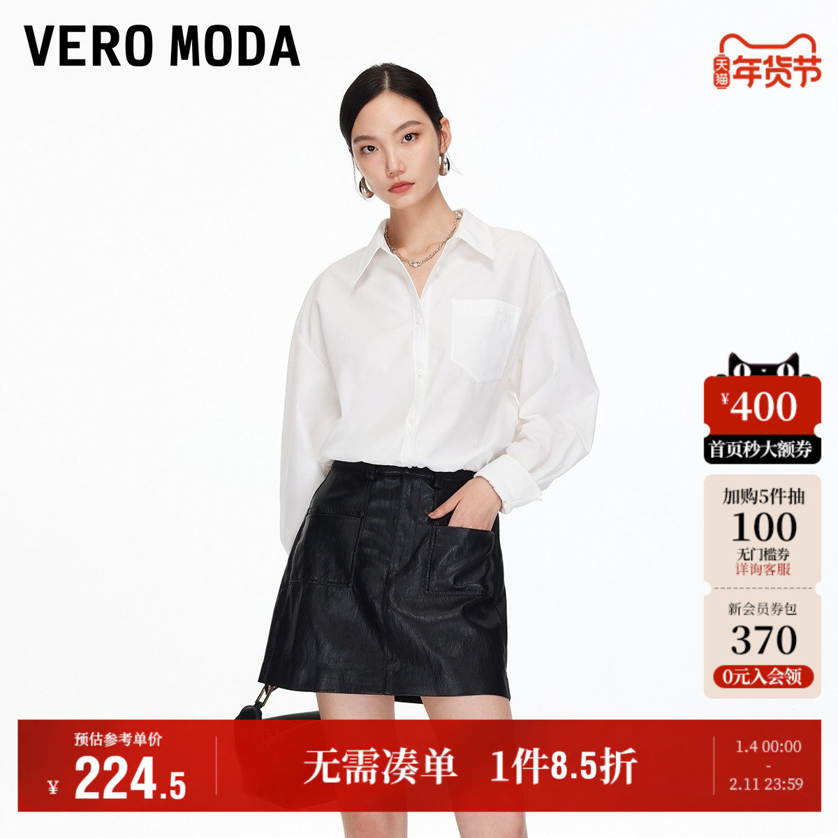 Vero Moda奥莱半身裙女2025秋冬新款PU双口袋A字短裙时髦百搭优雅