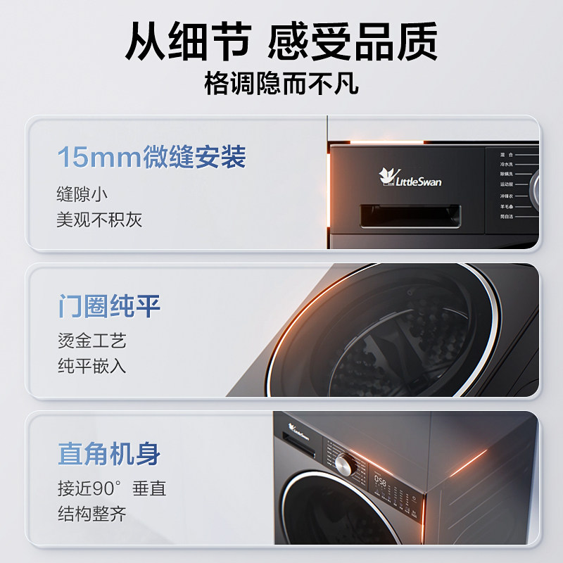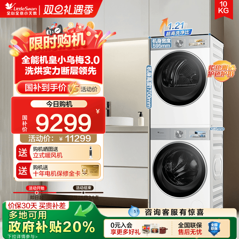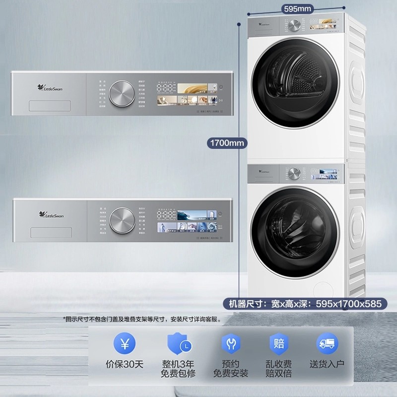[小乌梅3.0白]小天鹅洗烘套装10KG家用全自动滚筒热泵烘干组合40W