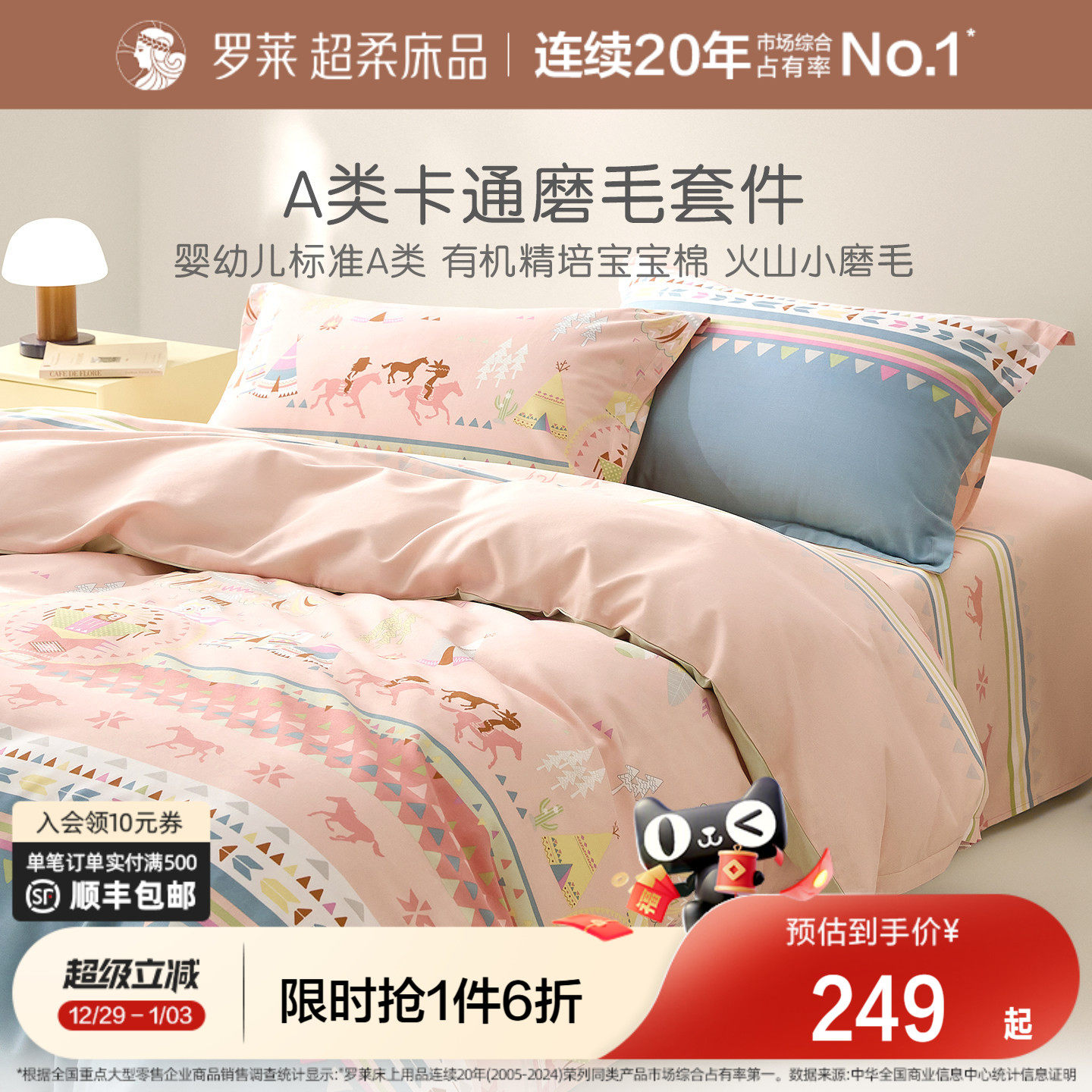 罗莱家纺儿童秋冬全棉磨毛加厚四件套纯棉床单被套被罩床笠学生