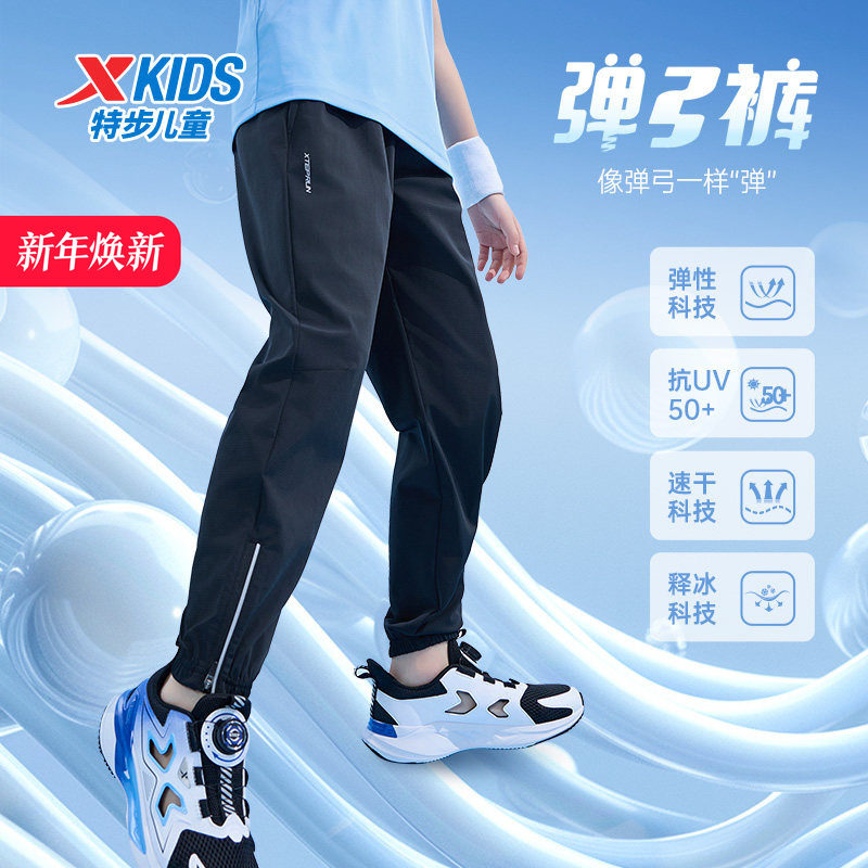 特步童装男童运动裤凉感防晒速干长裤夏季新款儿童防蚊裤户外透气