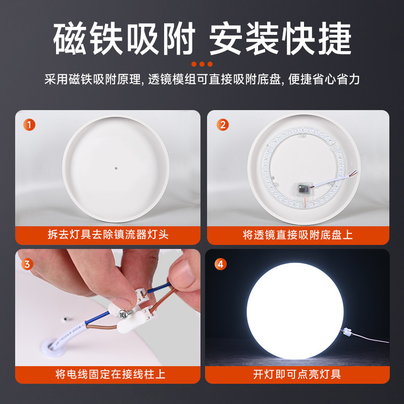 【新款升级】简易安装ed吸顶灯灯芯替换磁吸圆形灯盘暖光客厅灯板