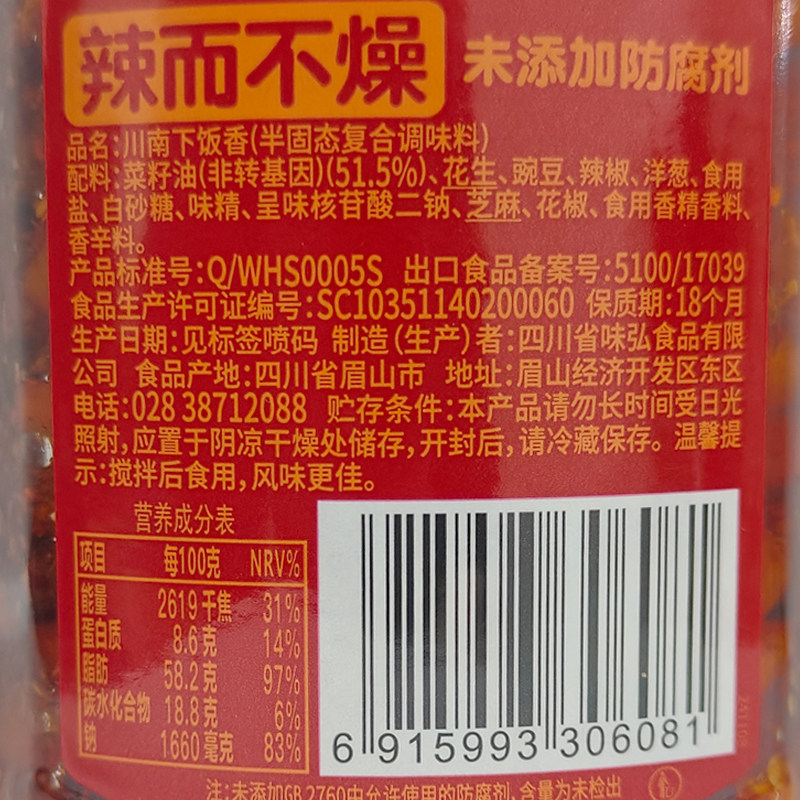 川南下饭香208g油辣子四川特产红油泼辣子辣椒酱下饭凉拌菜面蘸料
