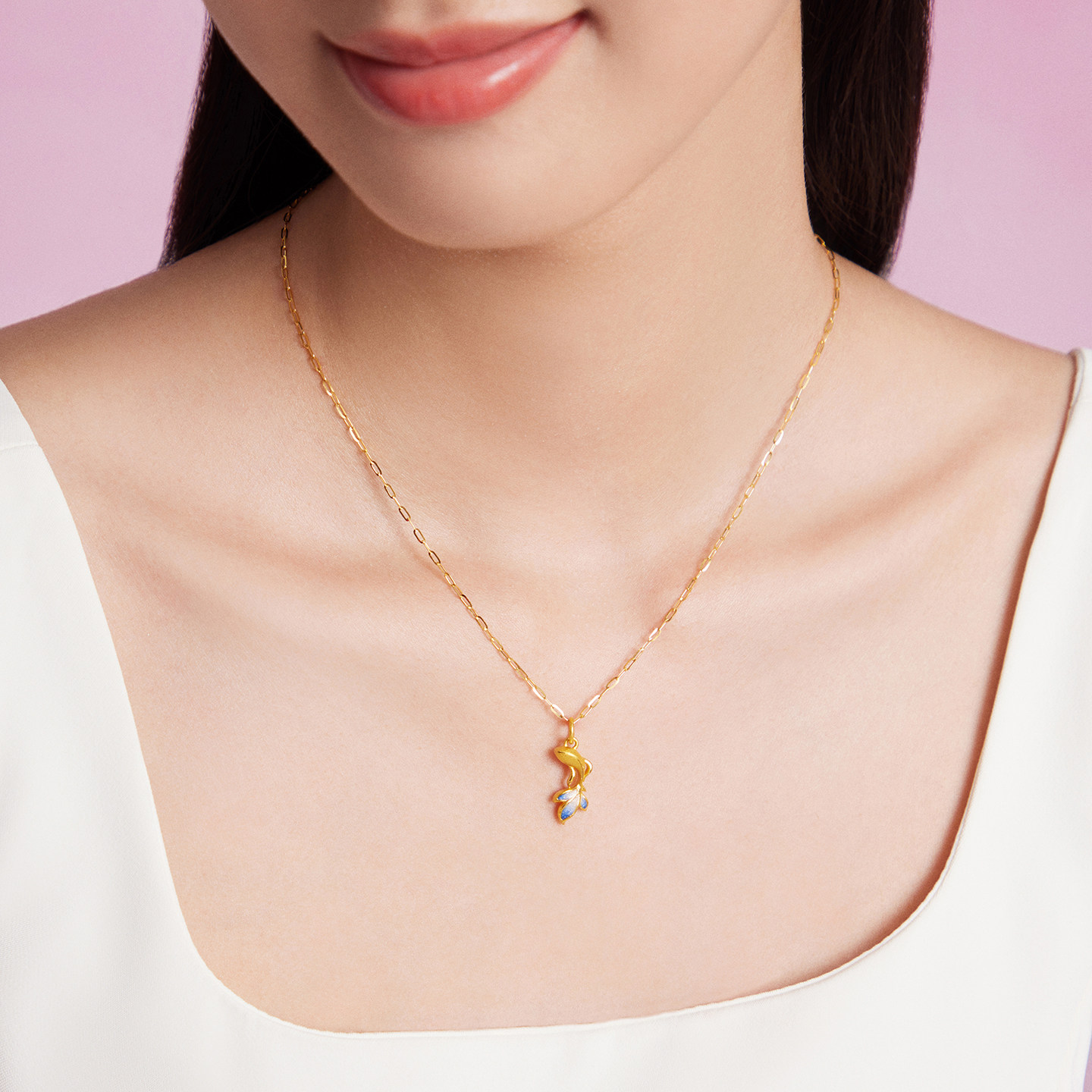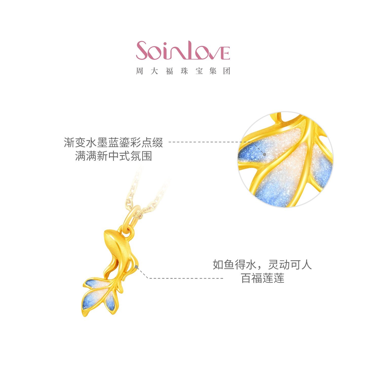 周大福SOINLOVE宝藏女孩如鱼得水锦鲤小蓝鱼黄金足金吊坠配绳送礼