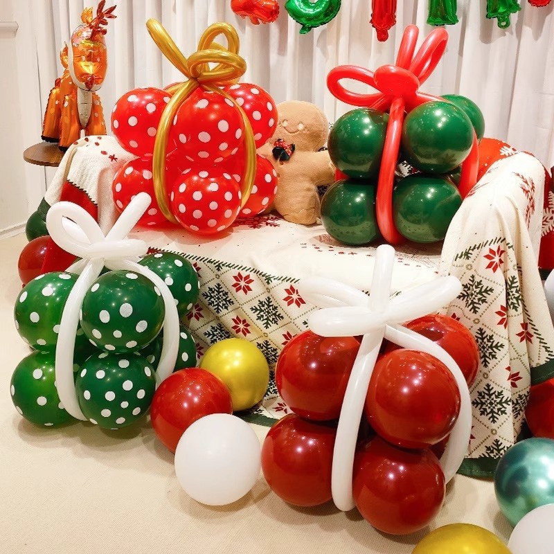 圣诞节装饰气球礼物包红绿色商场珠宝店铺幼儿园活动氛围场景布置