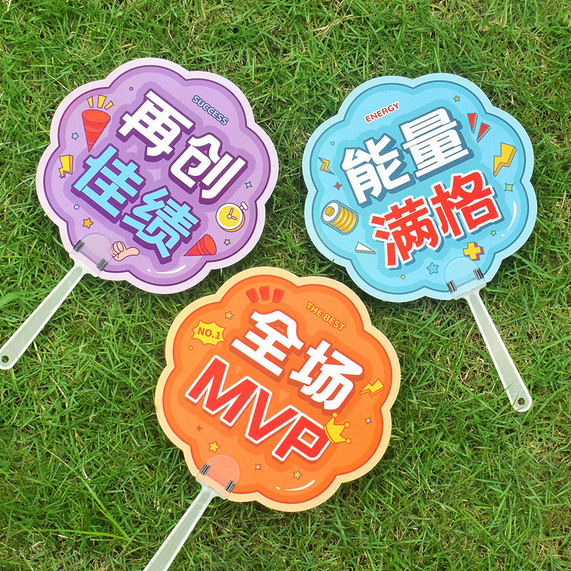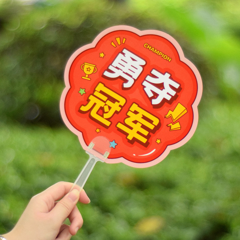 勇夺冠军励志文字运动会比赛加油书法扇子可爱小学生手持活动气氛道具学校班级儿童礼物迷你便捷随身团扇卡片