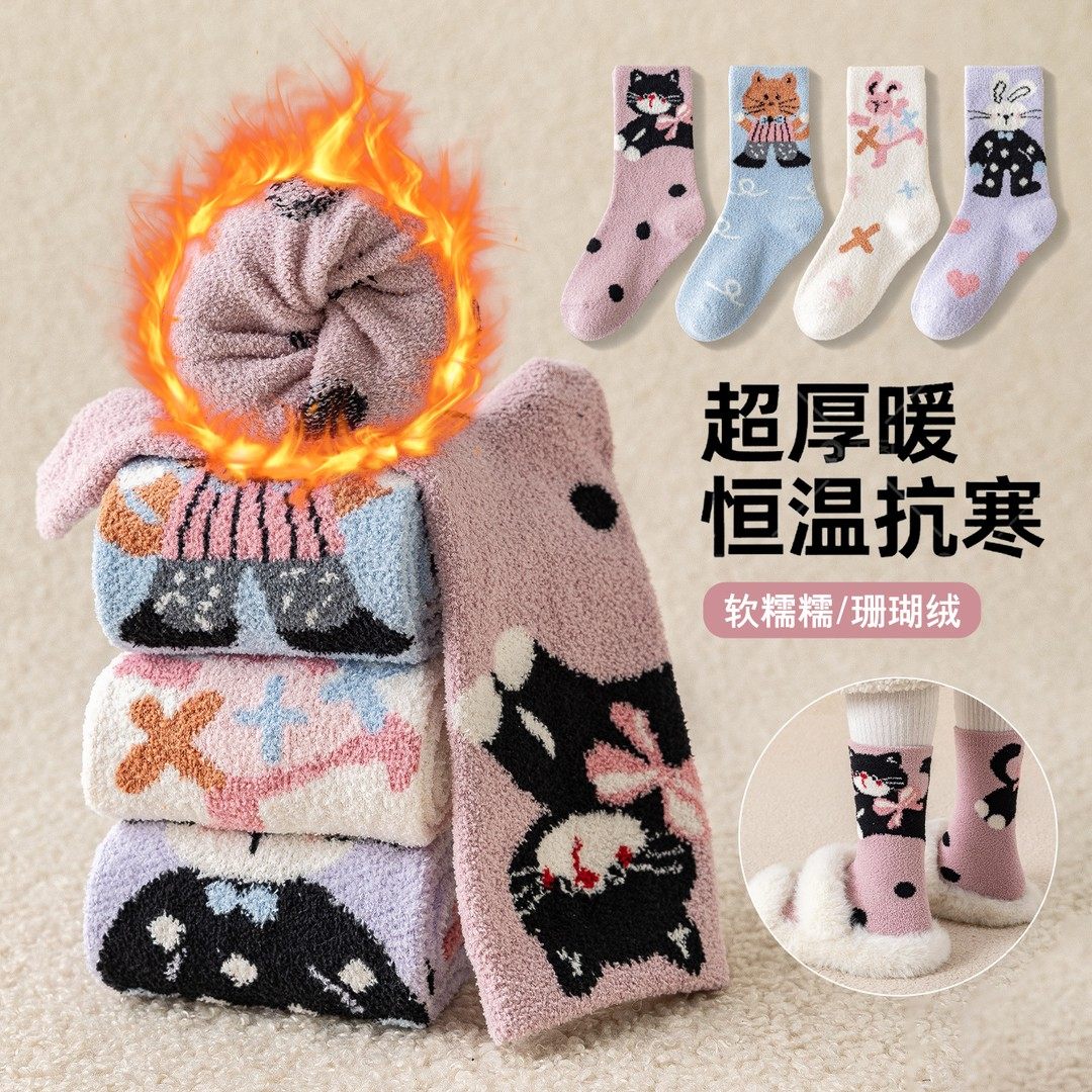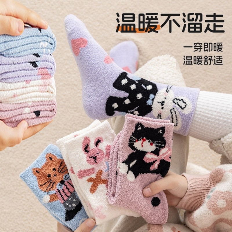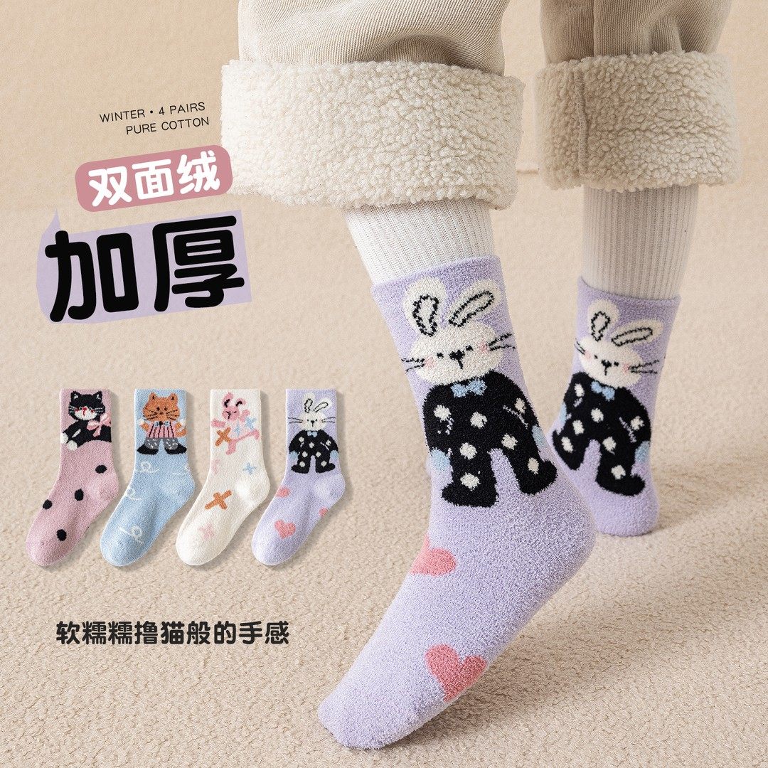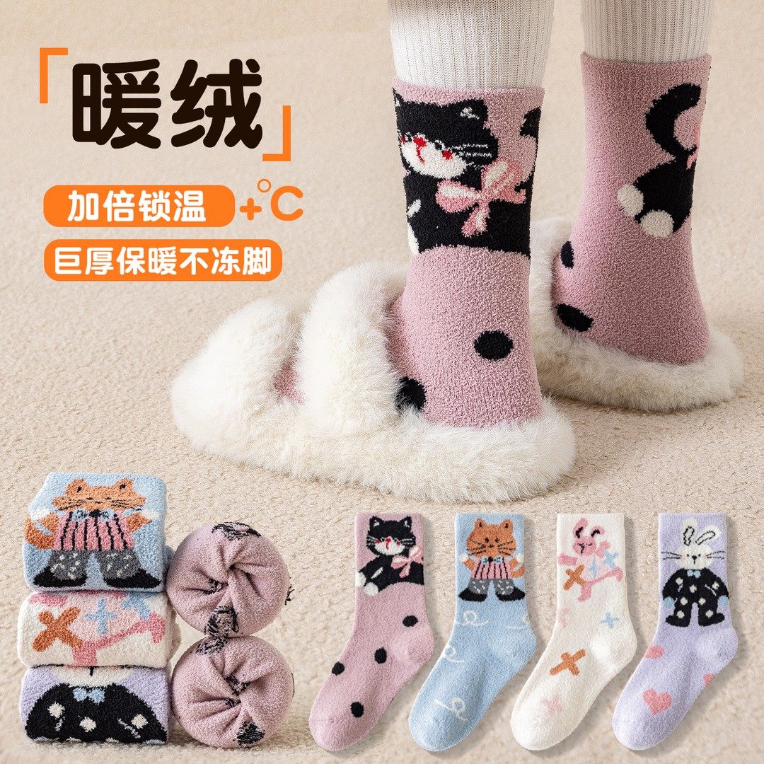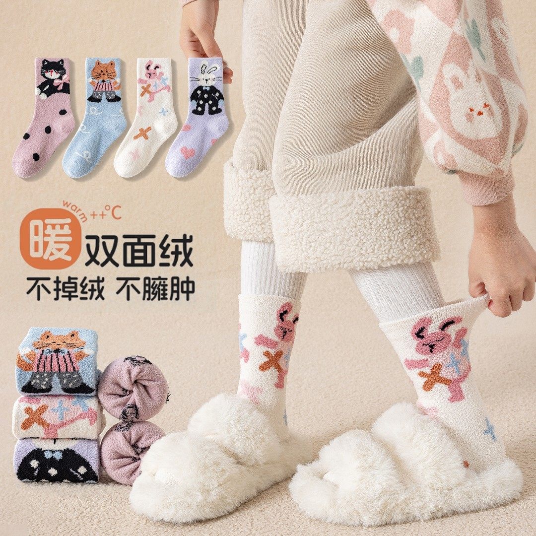 冬季女童袜子儿童加绒加厚保暖毛绒袜女孩卡通可爱厚款宝宝中筒袜