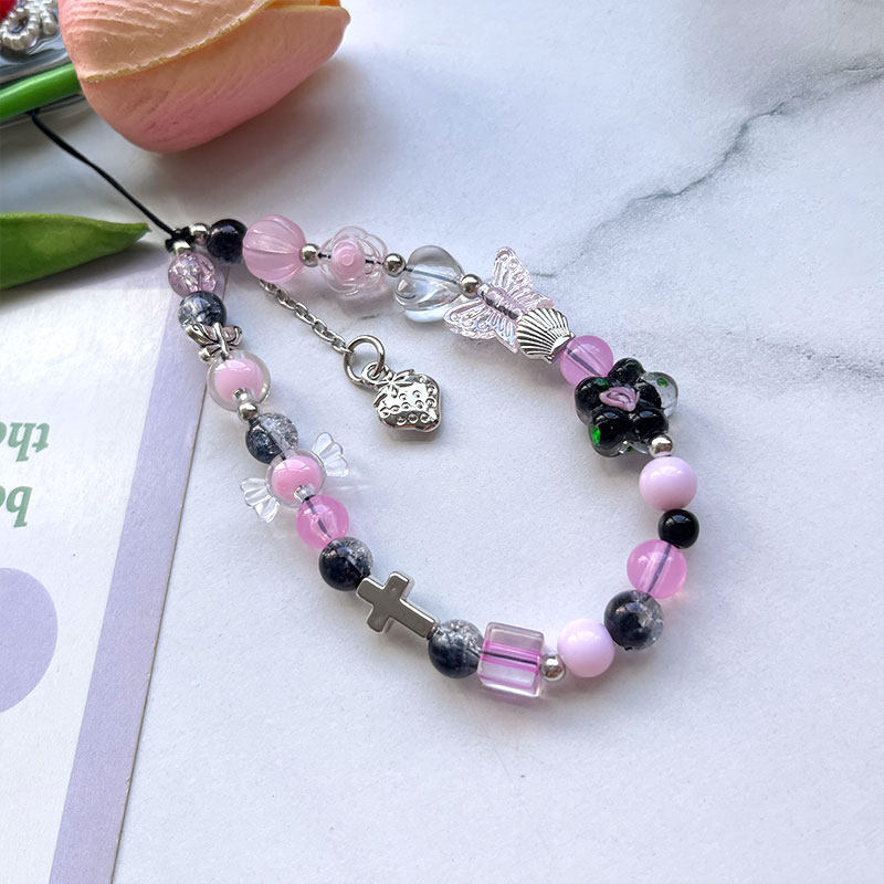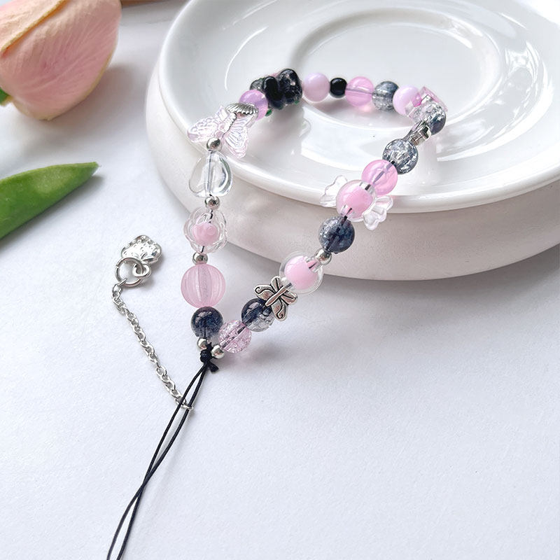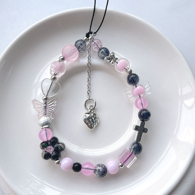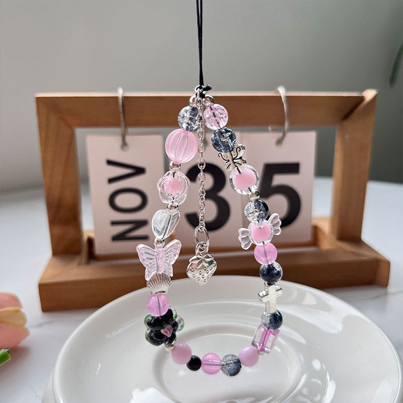 手机挂链短款高级感多巴胺个性蝴蝶水晶小清新粉色可爱女神创意手工串珠手机壳钥匙扣包包编织手机挂链配饰