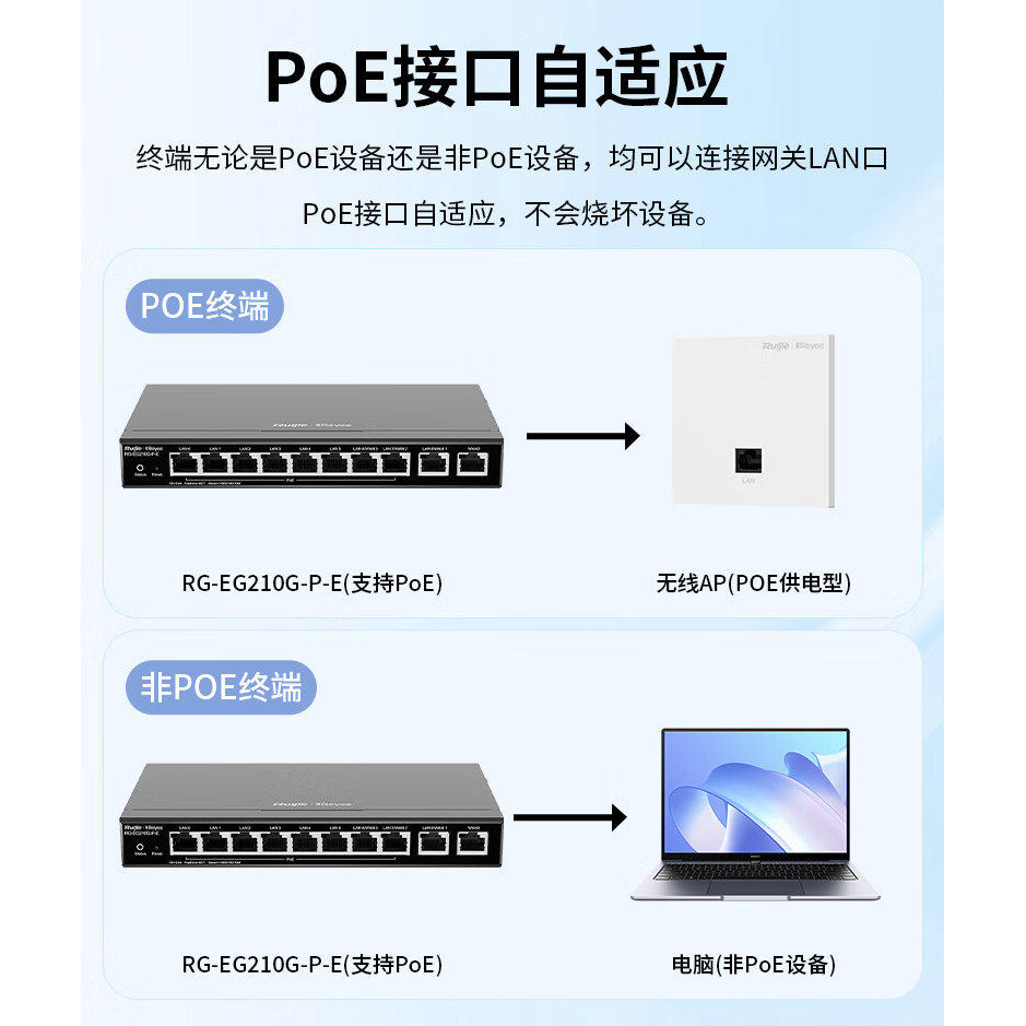 锐捷睿易无线AP面板RG-EAP102E路由器EG210G-P-E套装 10口AC千兆POE网关组网全屋WiFi覆盖大户型家用企业办公