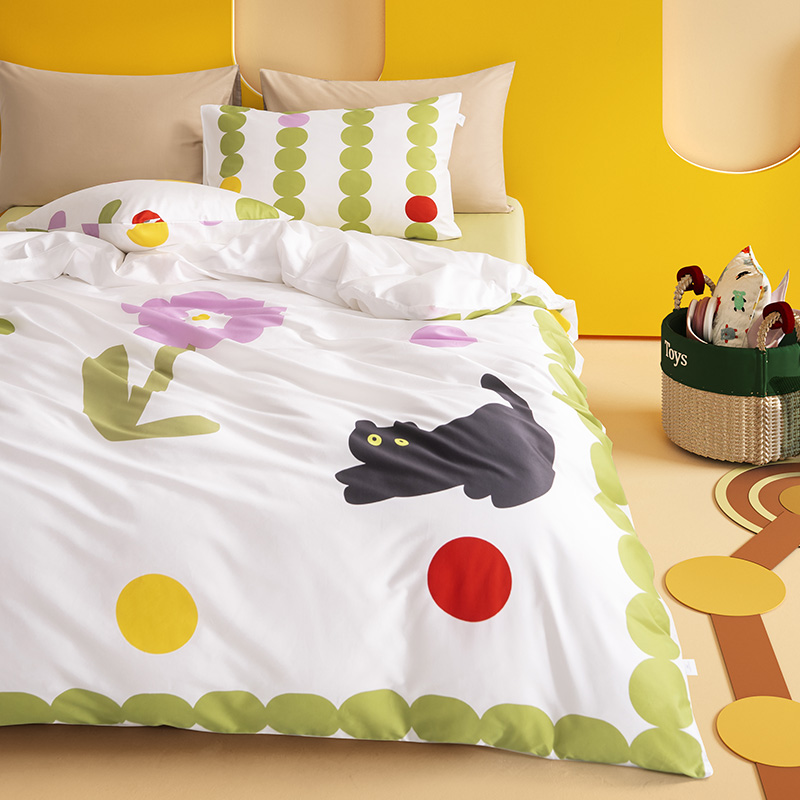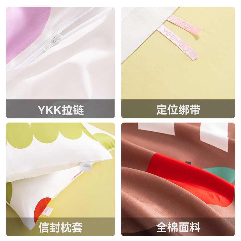 无印良品全棉四件套学生宿舍纯棉卡通儿童被套床单三件套床上用品