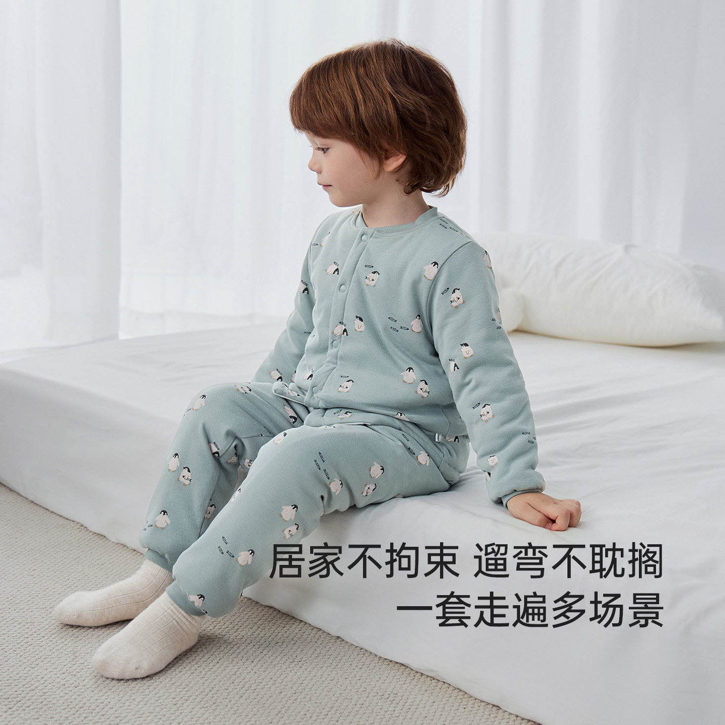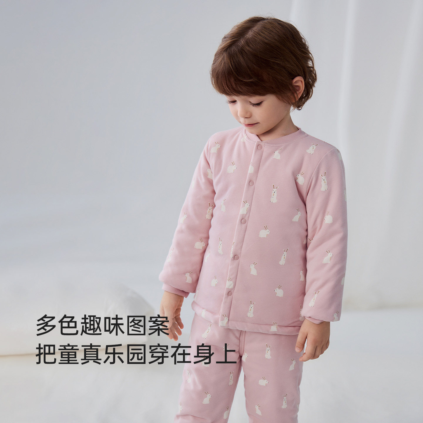 babylove宝宝夹棉保暖套装秋冬加厚纯棉婴儿上衣裤子两件套棉服