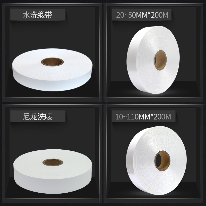 尼龙缎带洗唛金色洗唛空白水洗标服装涤纶香槟色唛头水洗唛布标米色丁带丝带绸带洗唛打印条码商标带织唛碳带