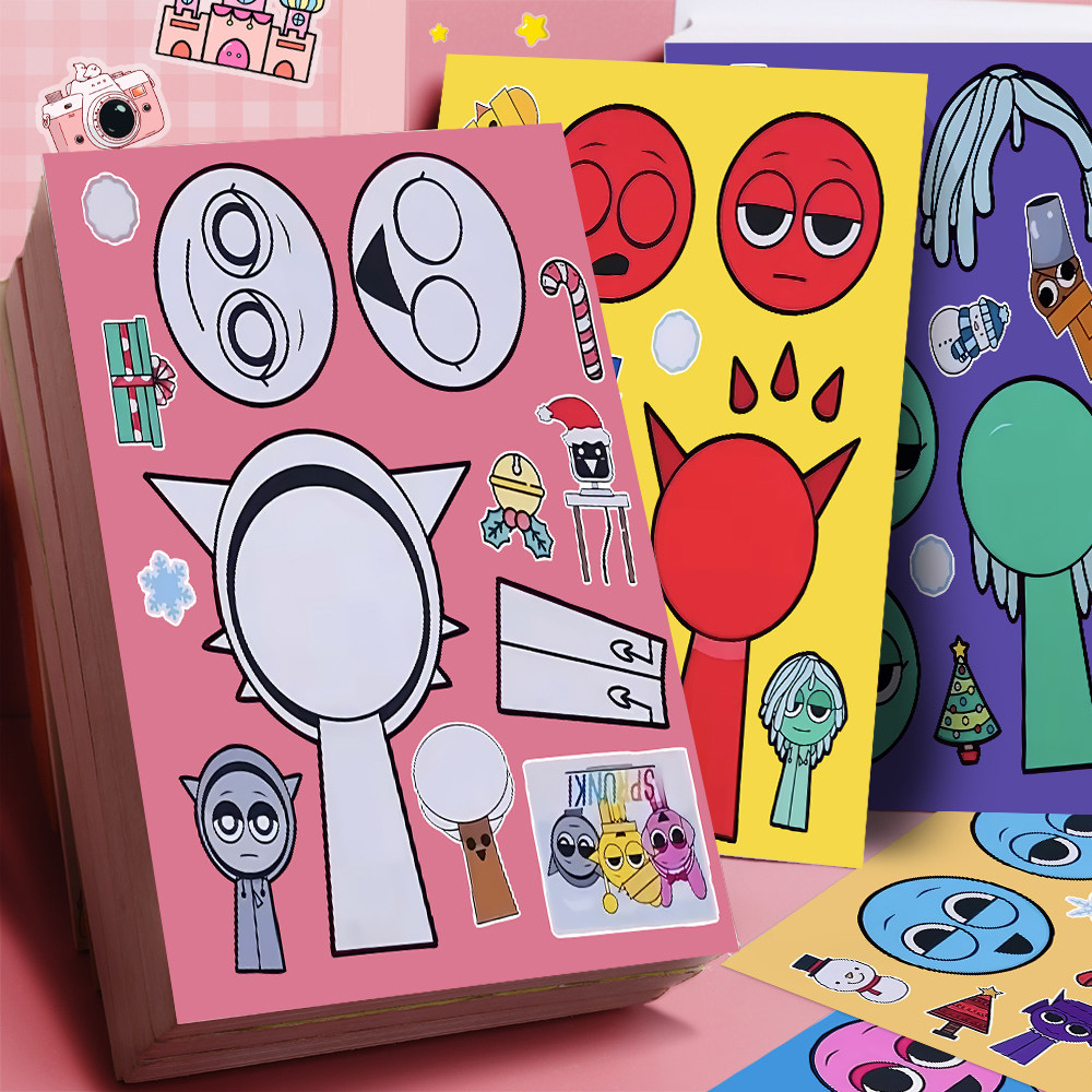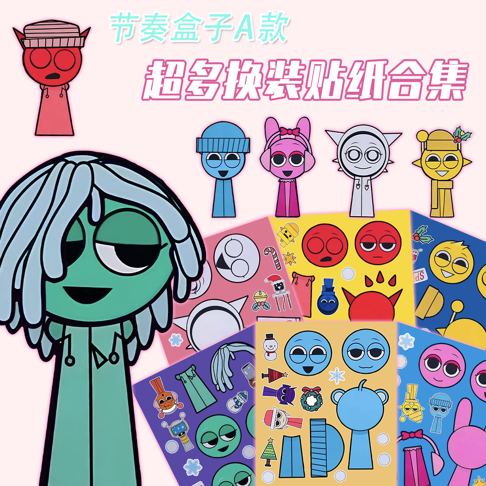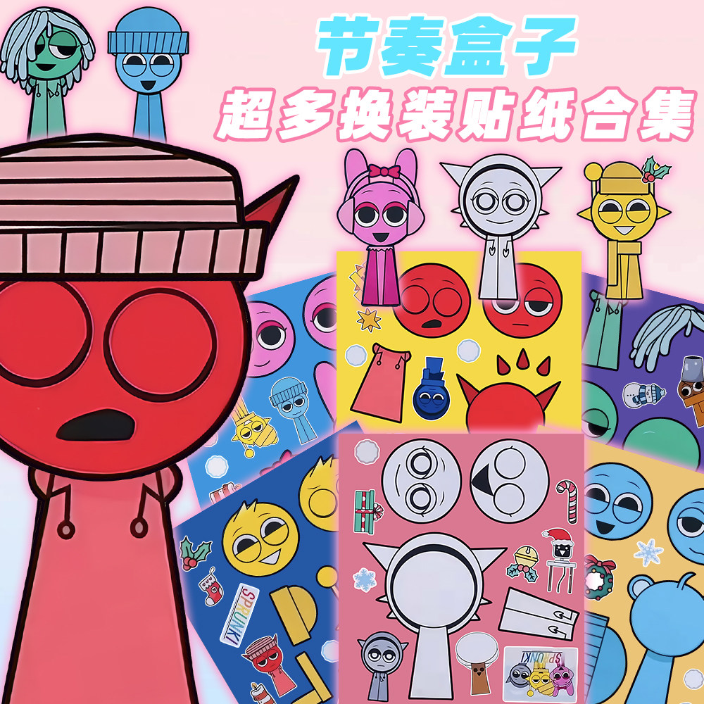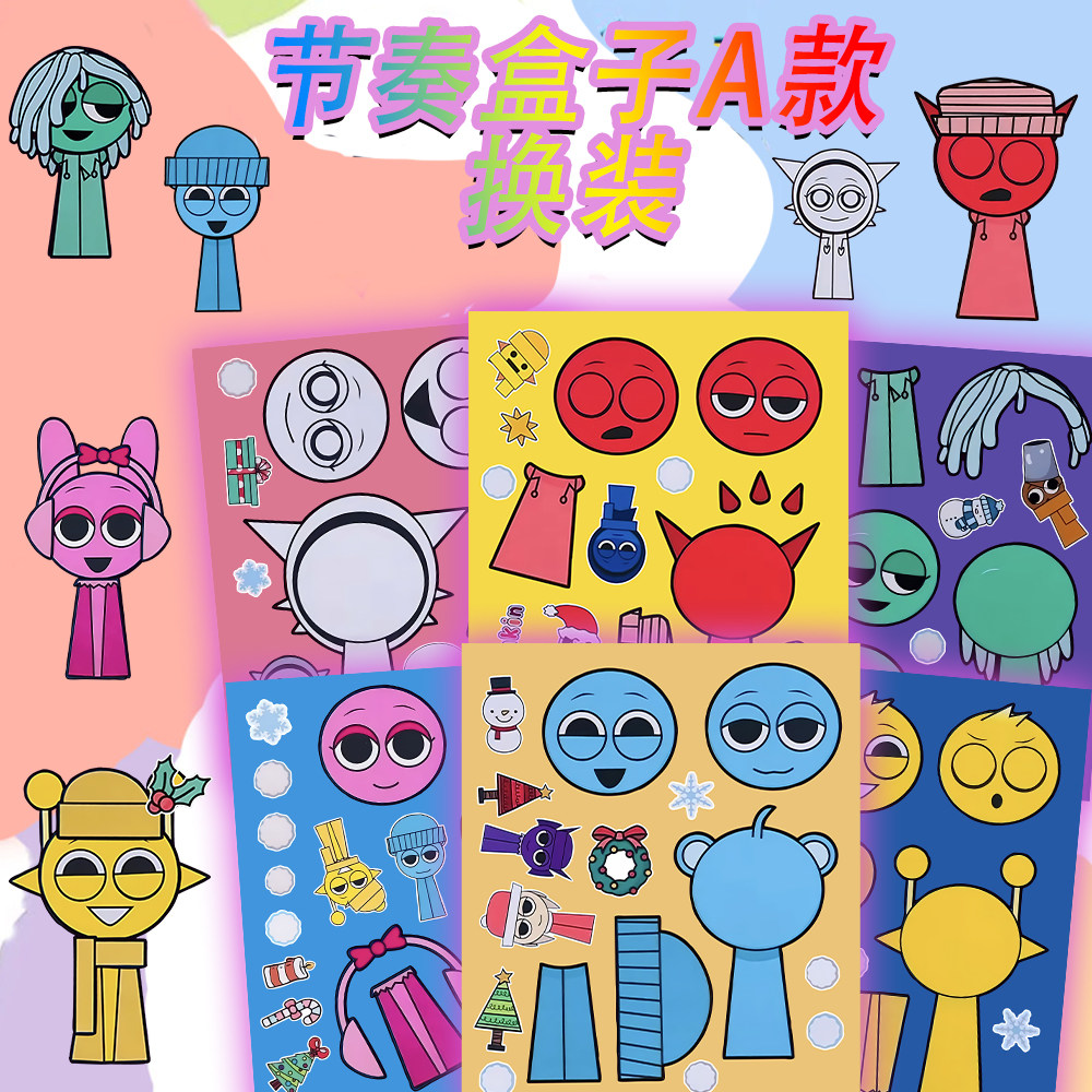 新款】节奏盒子个性换装贴纸儿童益智趣味手工创作diy装饰贴画