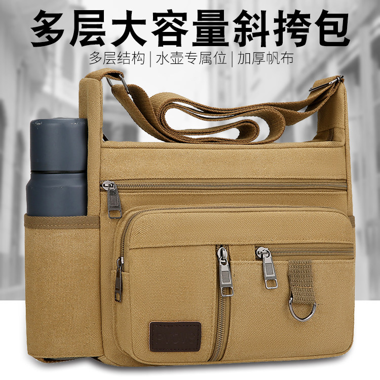 水杯男包手机包帆布包男新款大容量背包休闲单肩斜挎包结实横款