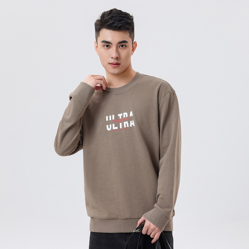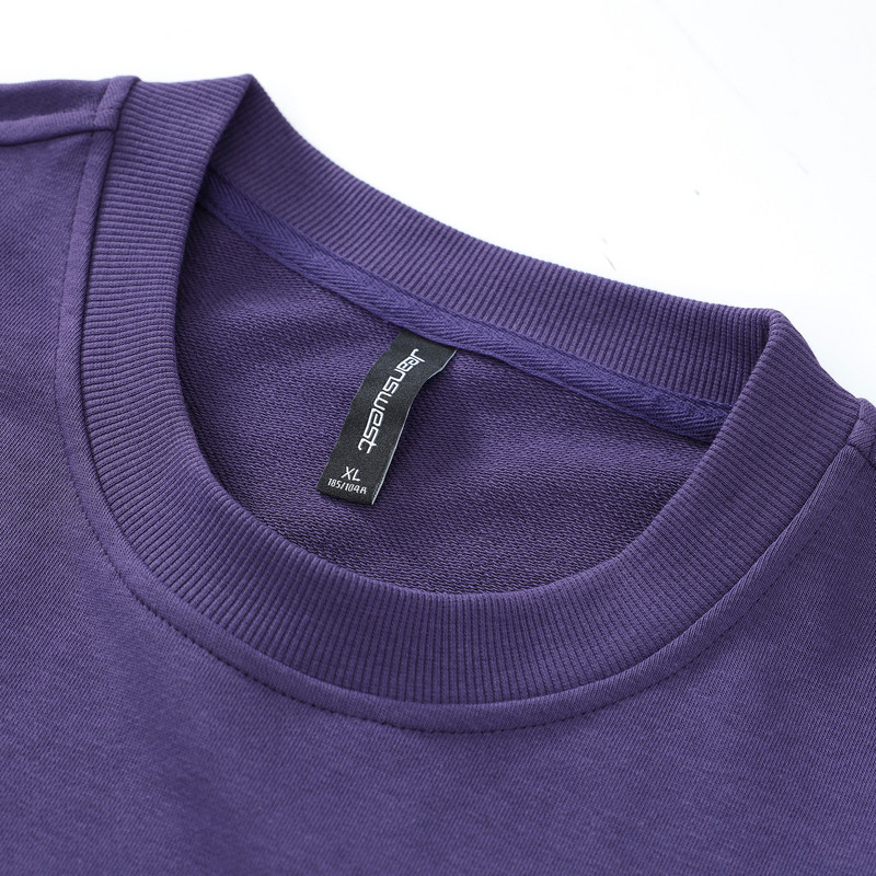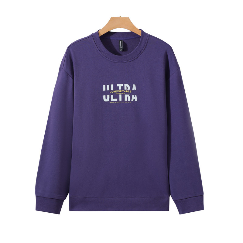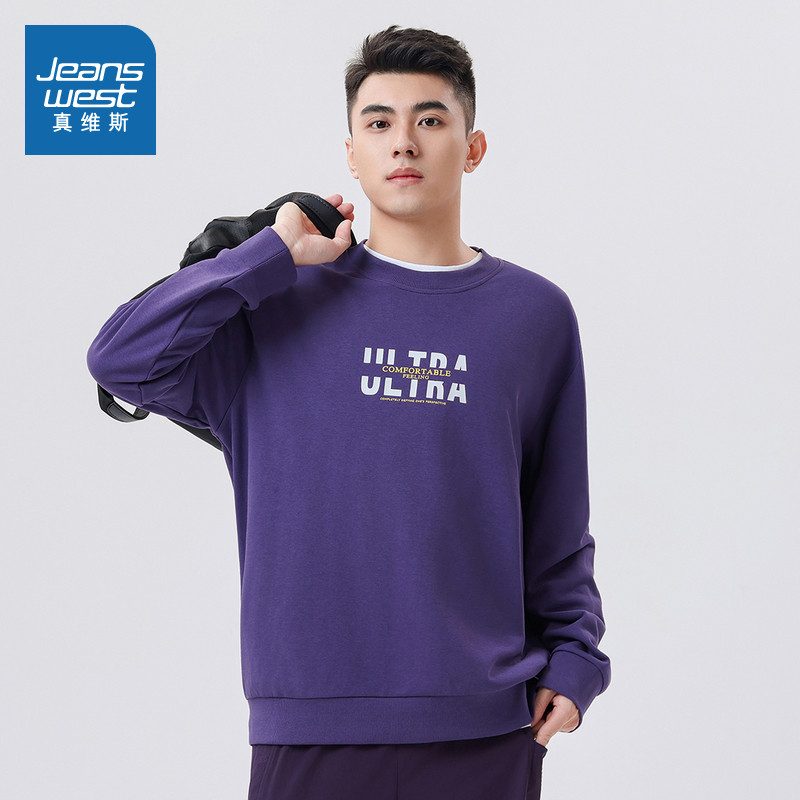 JW真维斯男装2026春季新款圆领印花长袖卫衣紫色宽松百搭上衣