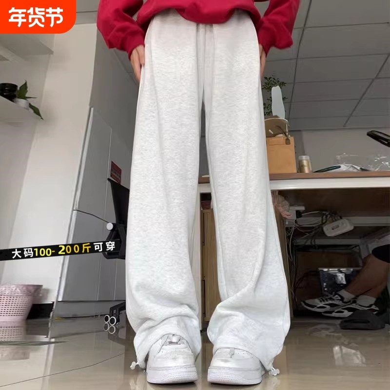 灰色运动裤女2025新款春秋阔腿裤小个子束脚卫裤加绒加长黑色白色