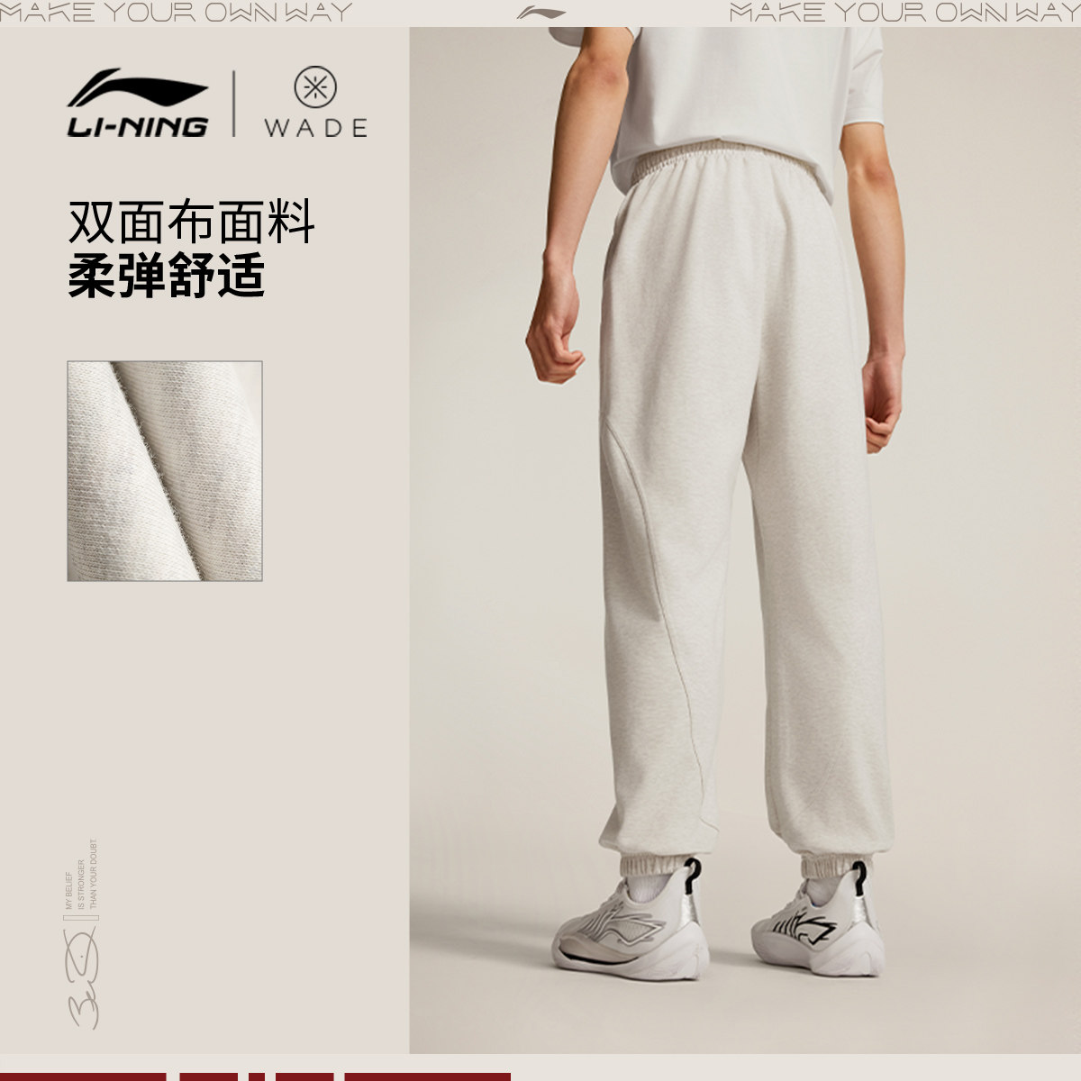 李宁卫裤2025新款通勤休闲裤子男款舒适宽松秋冬束脚针织运动裤