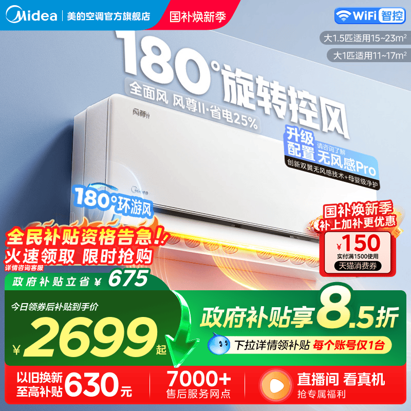 美的风尊二代PRO空调1.5匹2匹一级变频冷暖家用官方正品大挂机