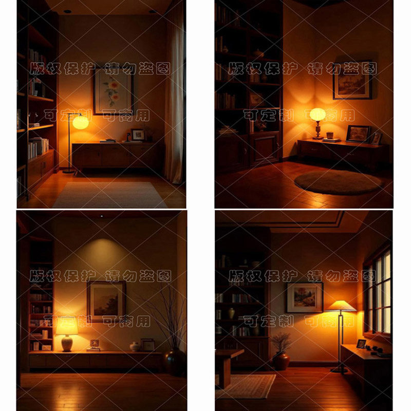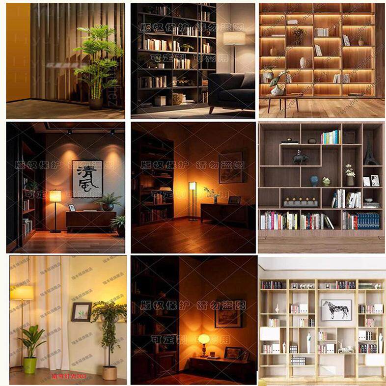 书橱背景墙布书房书柜背景布美妆情感直播间背景布3D立体背景布直播主播背景布网红暖色温馨背景墙