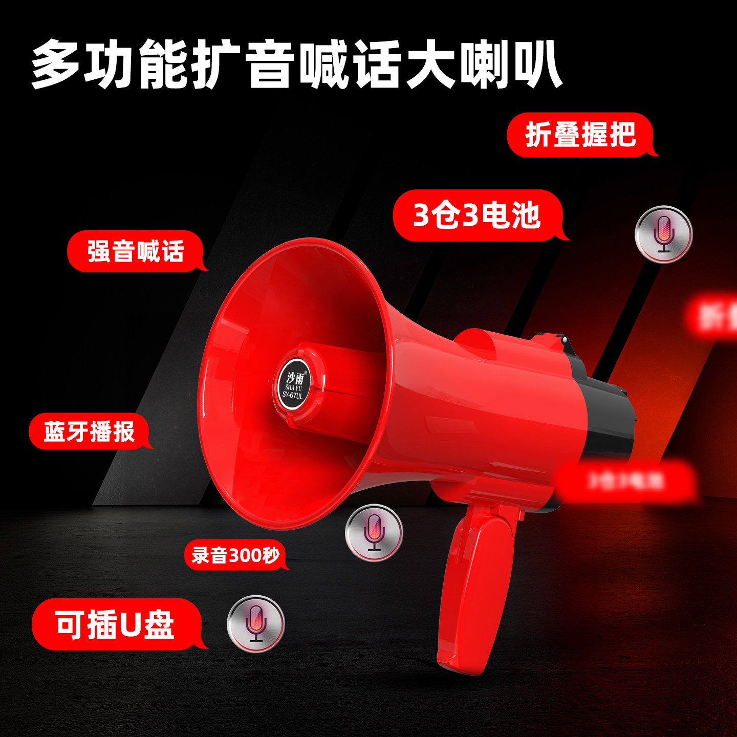 喇叭扬声器手持地摊扩音器蓝牙户外录音宣传大音量摆摊专用喊话器