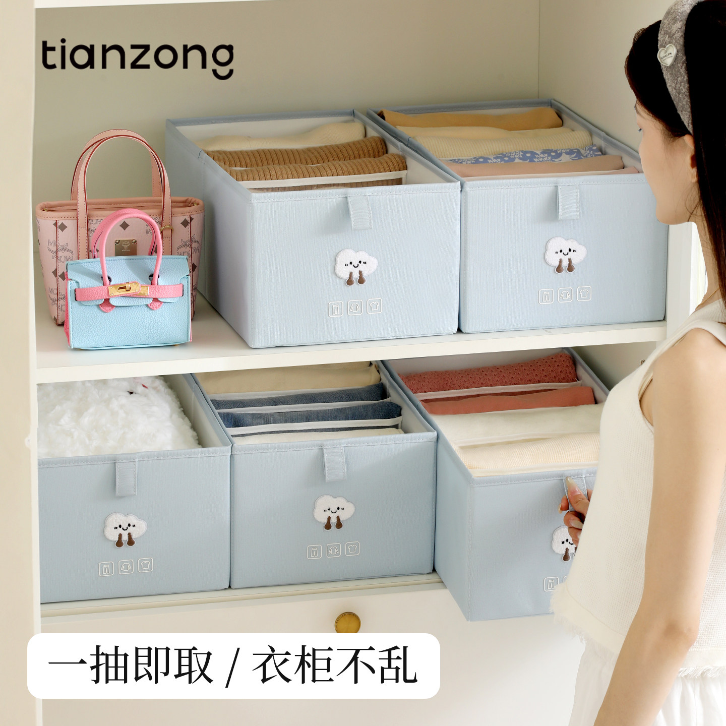 拍1发4衣服收纳筐神器布艺装衣物衣柜分层收纳箱家用框裤子整理盒