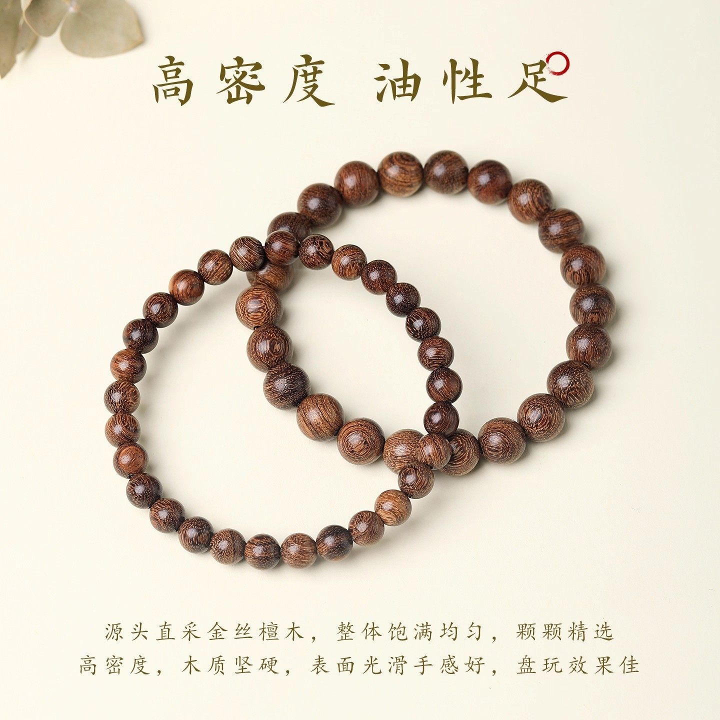 沉水树心老料金丝檀木手串男士天然檀木佛珠文玩手链盘玩男女款