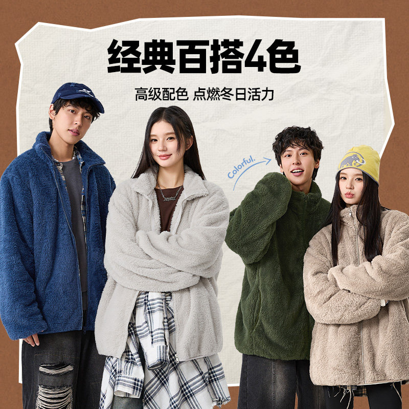 GV真维斯珊瑚绒立领外套男女秋冬双面绒加厚男士保暖摇粒绒夹克B