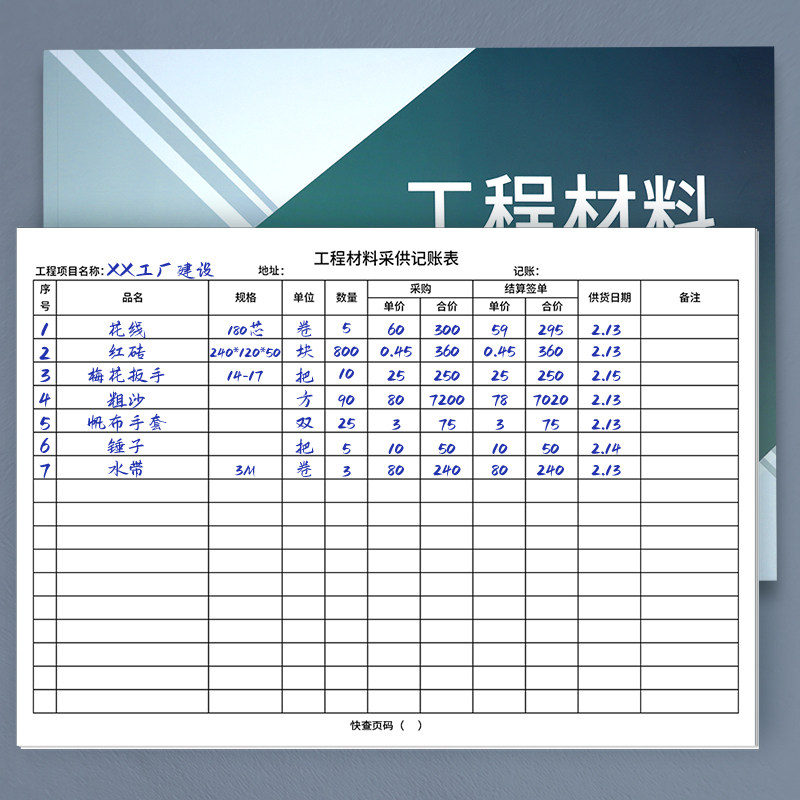 工程材料采供记账本工程项目材料采购记录本建筑工程材料供货记录表建筑家装物资采购记录材料采购结算清单本