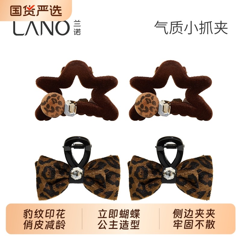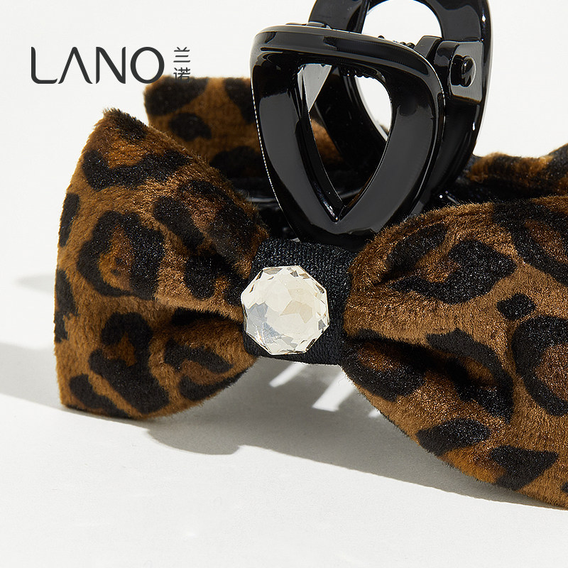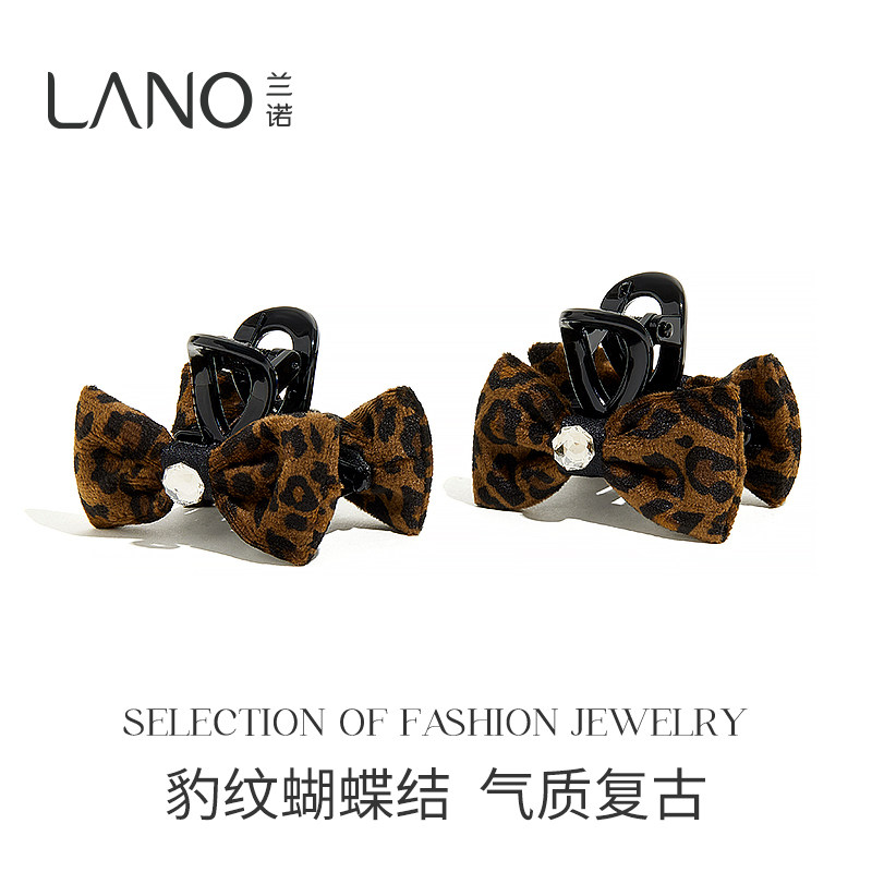 兰诺豹纹蝴蝶结抓夹女高级感2025秋冬新款小号发量少公主头对夹子