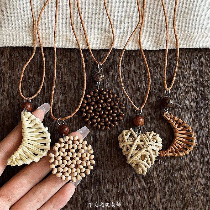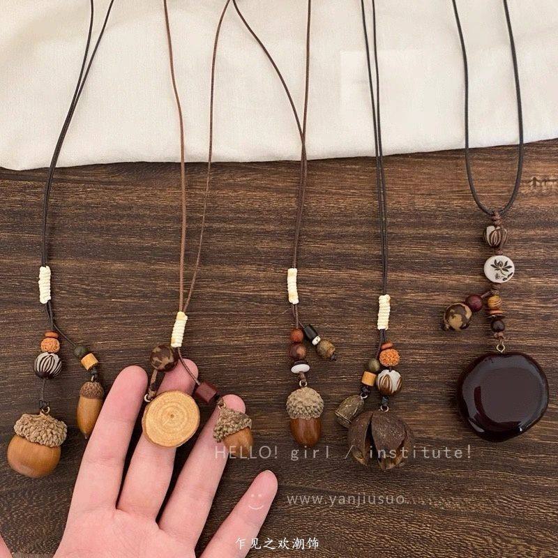 现货橡果森系植物干果毛衣链长款风配饰男女手工编织棉麻服饰项链