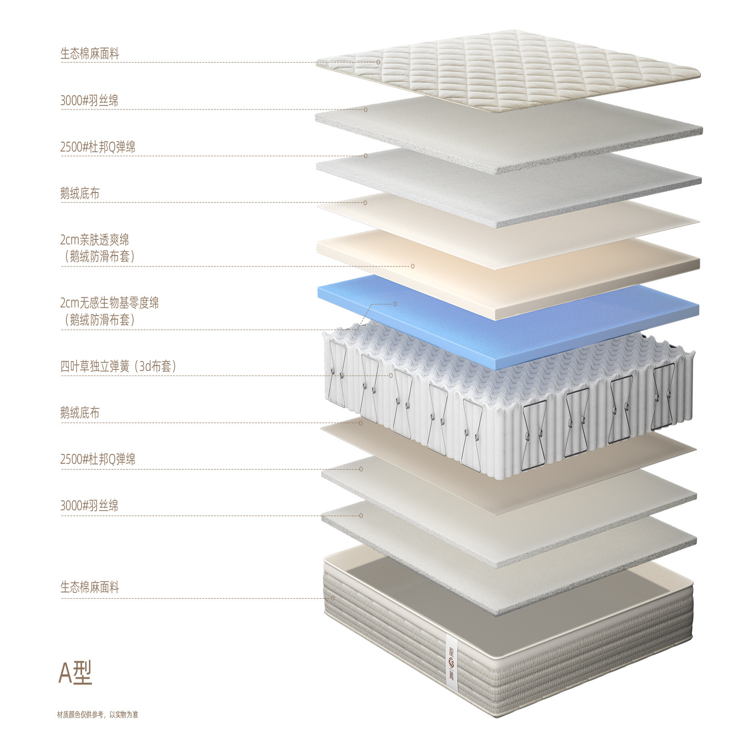 「寝物原始」整床无胶水独立袋装双层弹簧羊毛手工拉扣定制床垫
