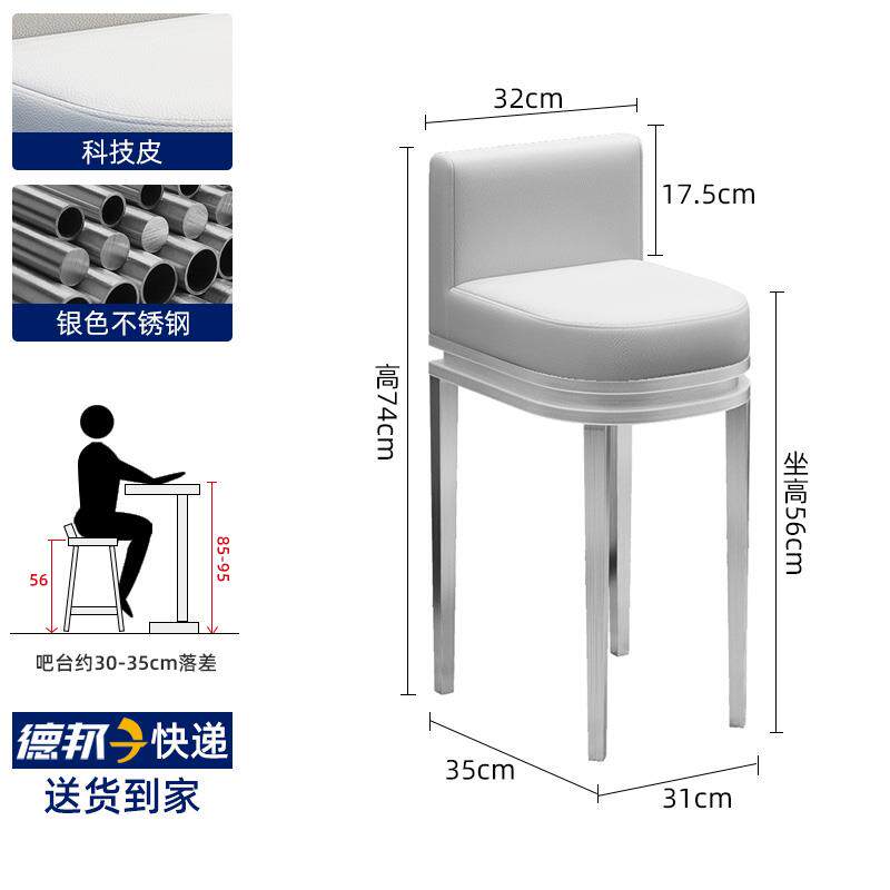 不锈钢吧台椅靠背眼镜珠宝店专用凳子前台收银台柜台现代高脚椅子