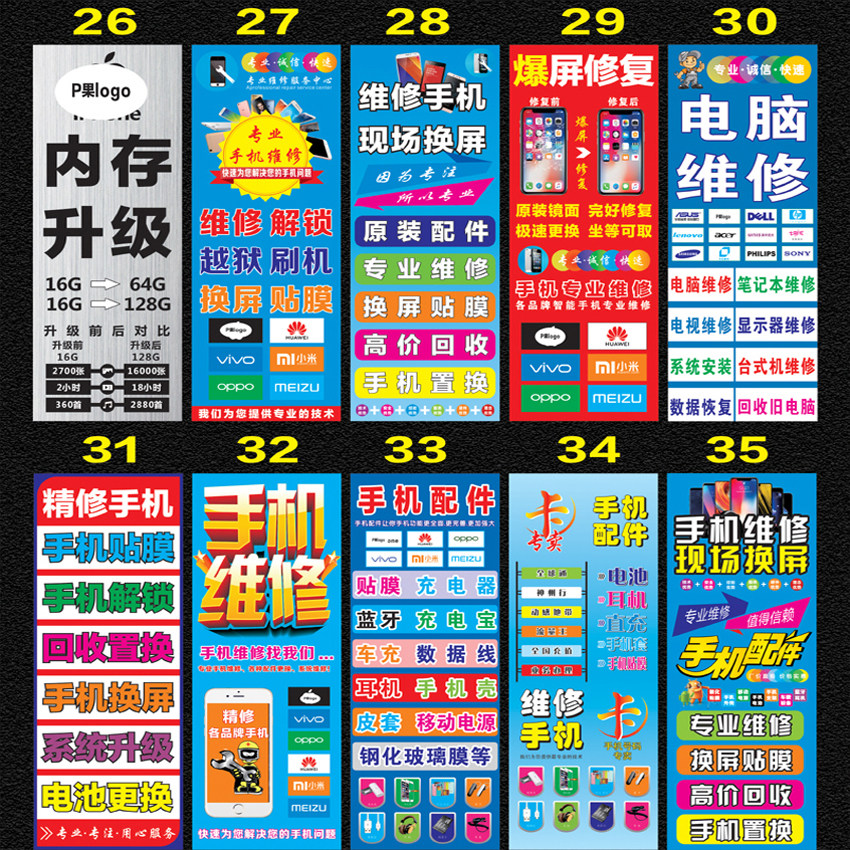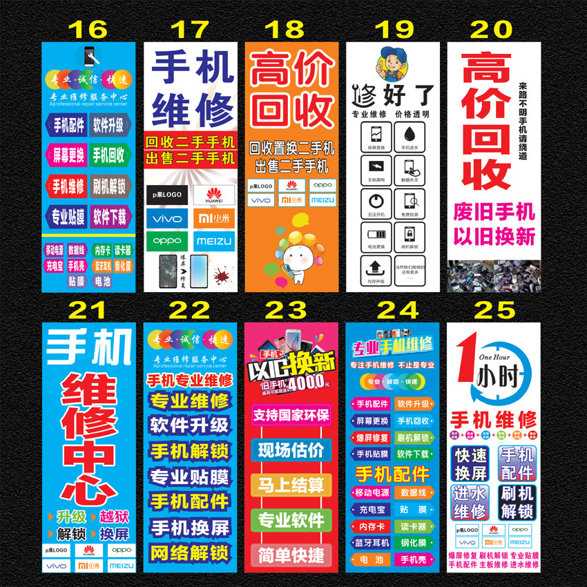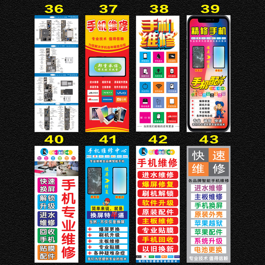 新款手机维修海报竖款爆屏修复手机店门柱贴宣传用品门柱贴柜台贴
