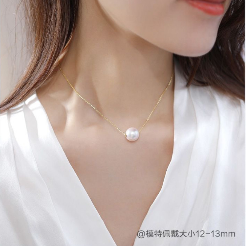 诸暨淡水珍珠路路通项链女正圆大白吊坠气质百搭锁骨链节日礼物