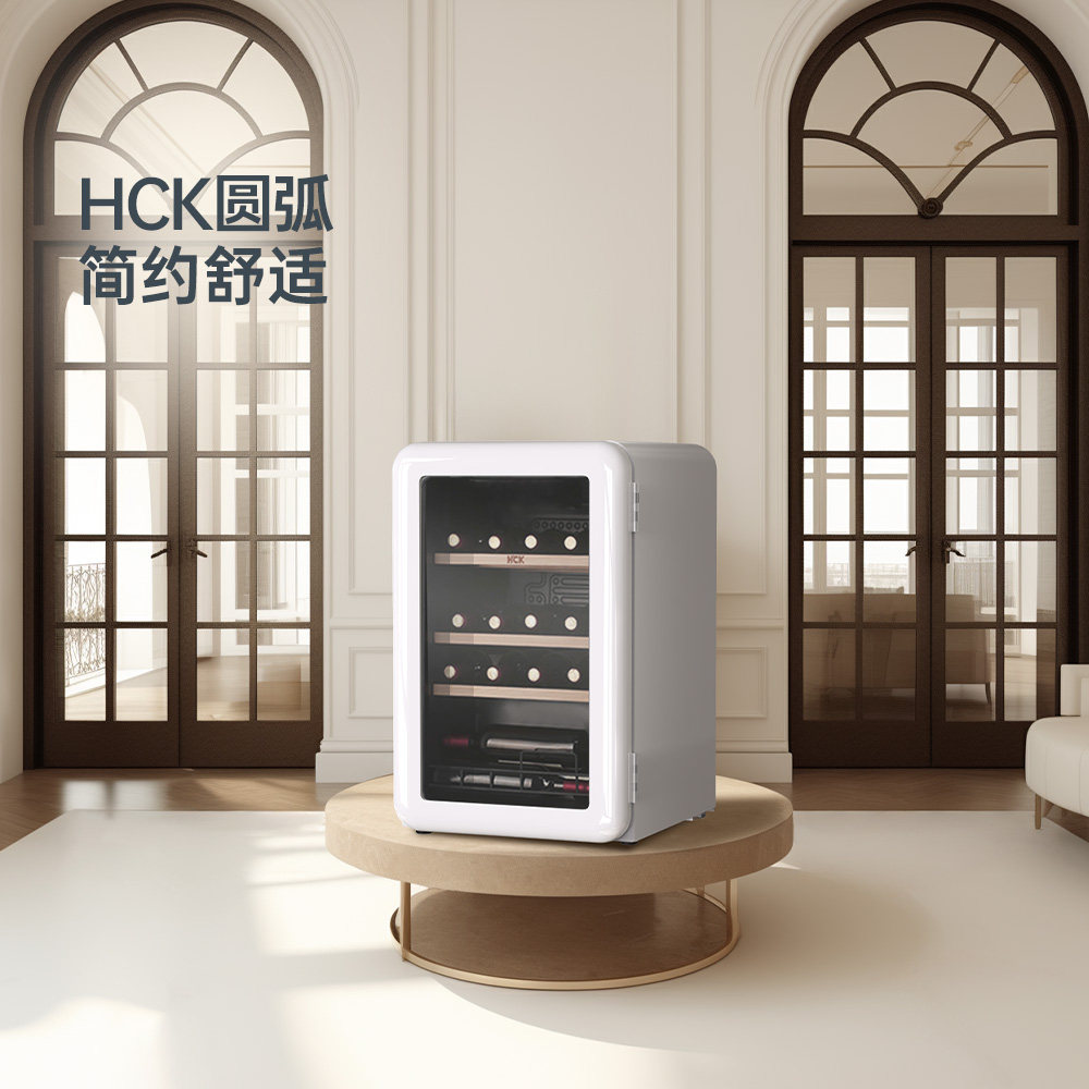 HCK哈士奇复古红酒柜恒温恒湿家用嵌入式小型冰吧超薄冷藏冰箱90