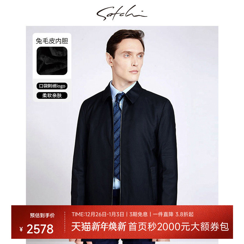 satchi/沙驰男装冬季新款商场同款男士皮草羊毛加厚外套男