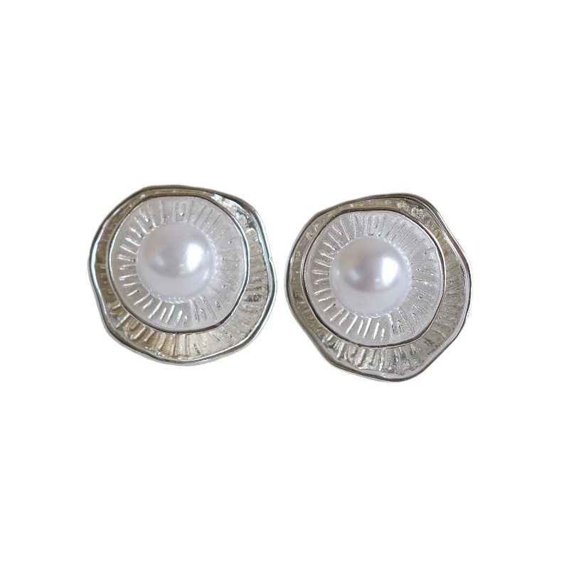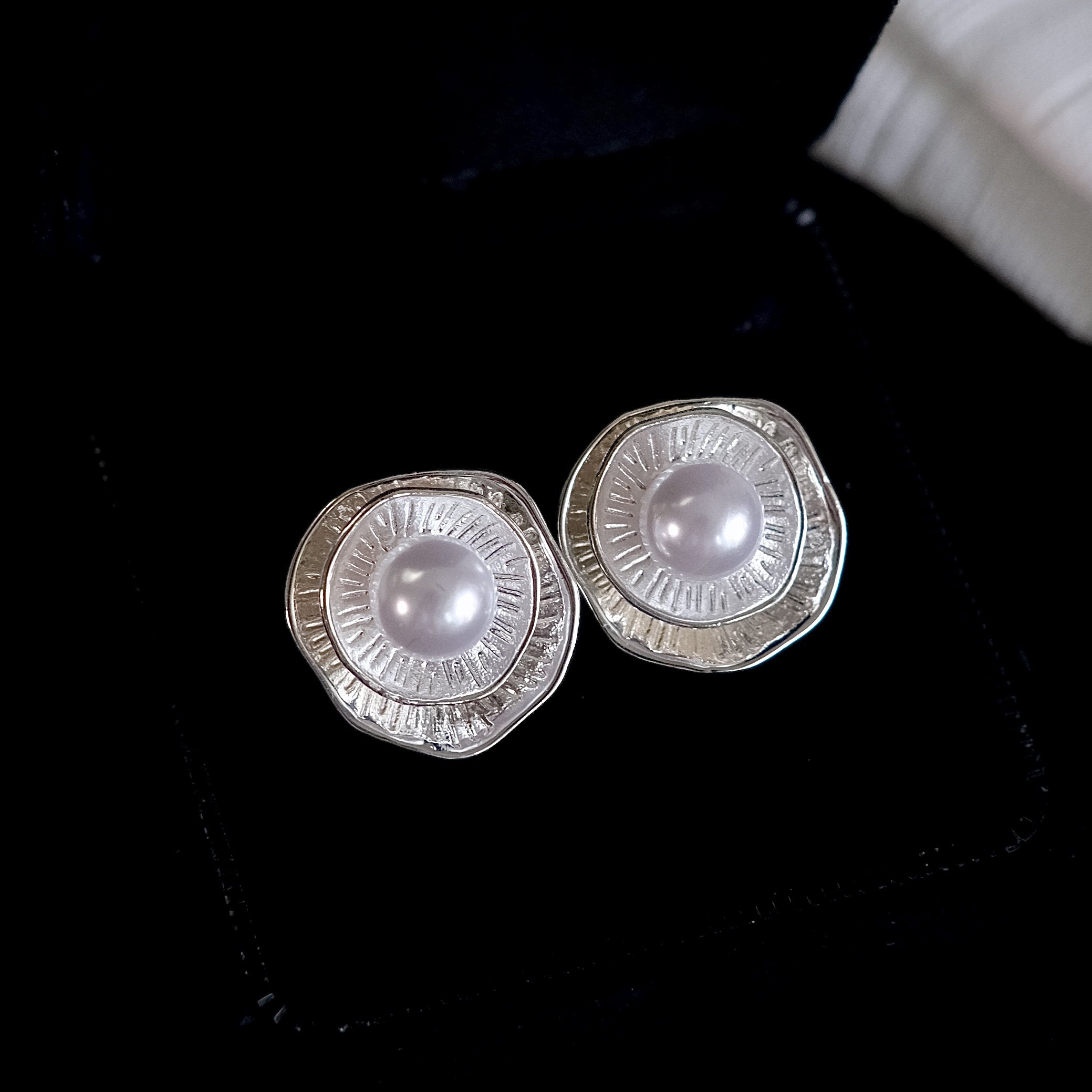 《晨露》新中式复古银色哑光肌理小众双层珍珠耳钉耳环耳夹蚊香盘