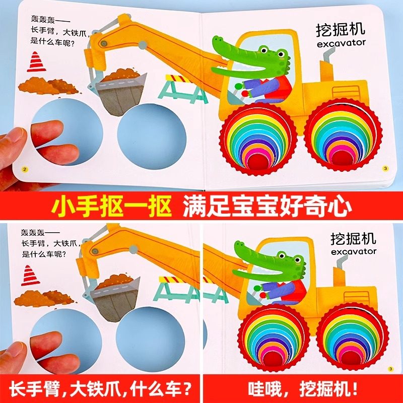 0-6岁宝宝早教洞洞书中英双语婴儿早教宝宝绘本故事书0-1-2-3-4-5-6岁幼儿园启蒙认知早教书幼儿交通工具识字幼儿益智启蒙玩具书