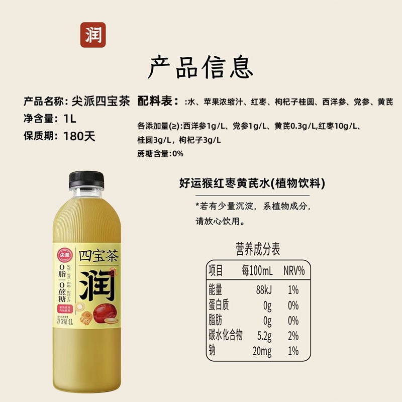 尖派元气四宝茶饮料男女红豆薏米水五黑茶养生茶草本植物饮品瓶装