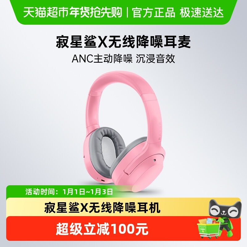 Razer雷蛇寂星鲨X粉晶头戴式电脑蓝牙无线ANC降噪音乐游戏耳机