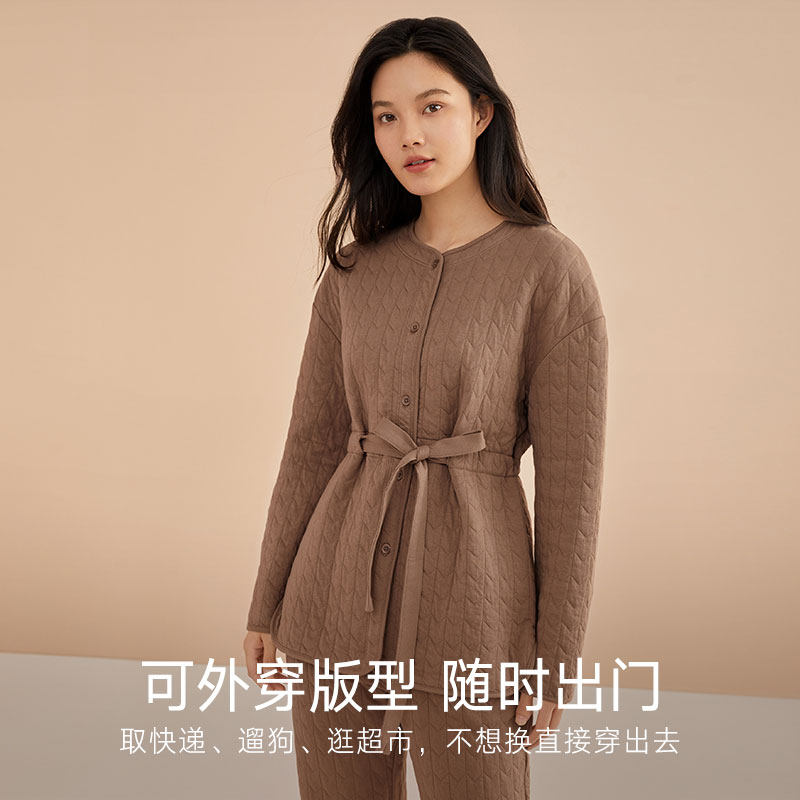 曼妮芬棉质生活冬季三层全棉睡衣女居家可外穿不易起静电棉家居服