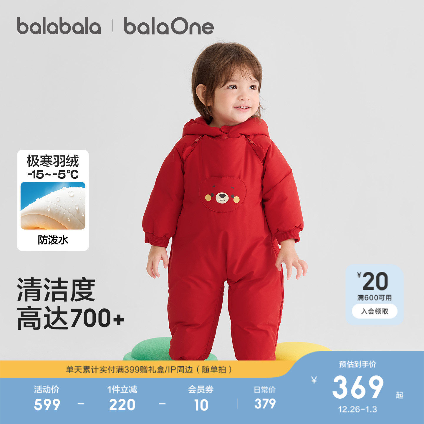 巴拉巴拉婴儿连体衣宝宝羽绒服冬装2025新款外出抱衣爬服连帽保暖