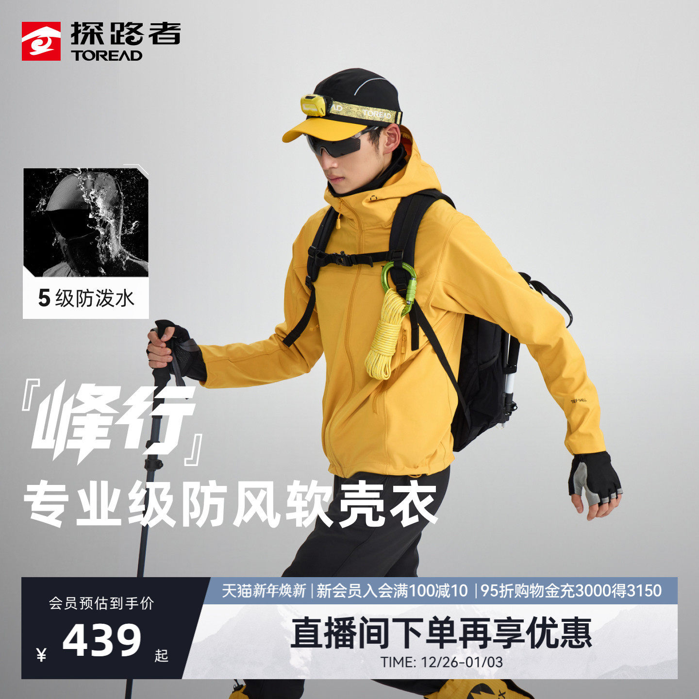 【峰行】探路者软壳衣户外登山徒步透气防风防泼水夹克外套男女